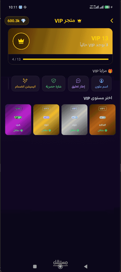 - نظام VIP وBadges ومتجر داخل التطبيق.