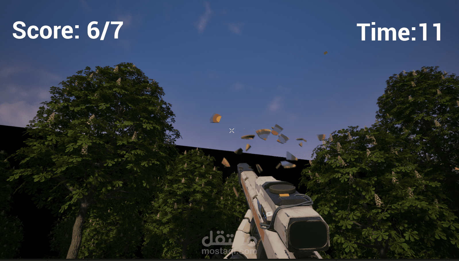عندما تخرج الرصاصة و تصطدم بالاهداف يخرج صوت الاصطدام ويتفكك الهدف حسب قوة الرصاصة (كلما ابتعد الهدف قلت قوة الرصاصة على الاهداف)