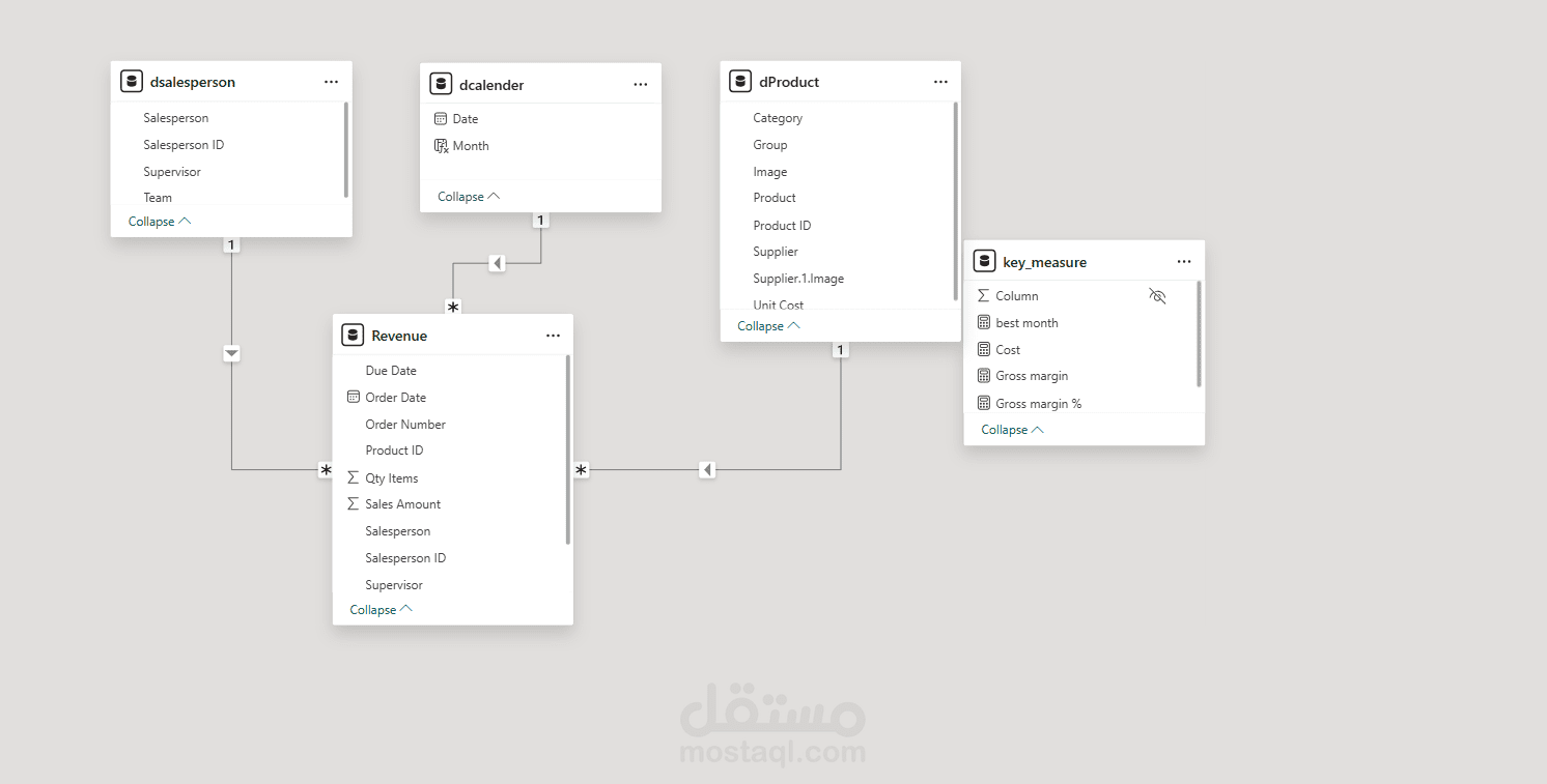 مشروع تحليل الإيرادات وهامش الربح (Revenue & Gross Margin Analysis)هذا المشروع يهدف إلى تقديم رؤية تحليلية شاملة لأداء المبيعات والربحية لمساعدة أصحاب القرار في تتبع المؤشرات المالية بدقة. قمت من خلاله ببناء حل متكامل يعتمد على دورة تحليل البيانات الكاملة:تنظيف ومعالجة البيانات (Data Cleaning & Wrangling): قمت باستخدام Power Query لتنظيف البيانات الخام، ومعالجة القيم المفقودة، وتصحيح أنواع البيانات لضمان دقة التحليل النهائي.هيكلة البيانات (Data Modeling): صممت نموذج بيانات احترافي يعتمد على نظام Star Schema، حيث قمت بربط جدول الحقائق الأساسي (Revenue) بجداول الأبعاد (Dimensions) مثل المنتجات (dProduct)، الموظفين (dsalesperson)، والتقويم (dCalender) لضمان سلاسة استخراج التقارير.التحليلات المالية المتقدمة (DAX): قمت ببرمجة مقاييس ذكية (Measures) باستخدام لغة DAX لحساب مؤشرات الأداء الرئيسية مثل إجمالي الإيرادات، التكاليف (Cost)، وهامش الربح (Gross Margin) ونسبته المئوية، بالإضافة إلى تحديد "أفضل شهر" أداءً بشكل آلي.لوحة المؤشرات التفاعلية (Interactive Dashboard): صممت واجهة بصرية احترافية تعرض النتائج التالية:الأرقام الرئيسية: إجمالي إيرادات بقيمة 9.6 مليون دولار وصافي هامش ربح بنسبة 41.5%.تحليل الموردين: مقارنة أداء الموردين المختلفين من حيث حجم المبيعات ونسبة الربحية لكل منهم.توزيع القنوات: تحليل المبيعات حسب فرق العمل وقنوات التوزيع (Retail, Wholesale, Online).التفاعل الديناميكي: إمكانية تصفية البيانات حسب الأقاليم (مثل North West, South West) أو الفترات الزمنية المختلفة.الأدوات المستخدمة: Microsoft Power BI , Power Query , DAX Language , Data Modeling.
