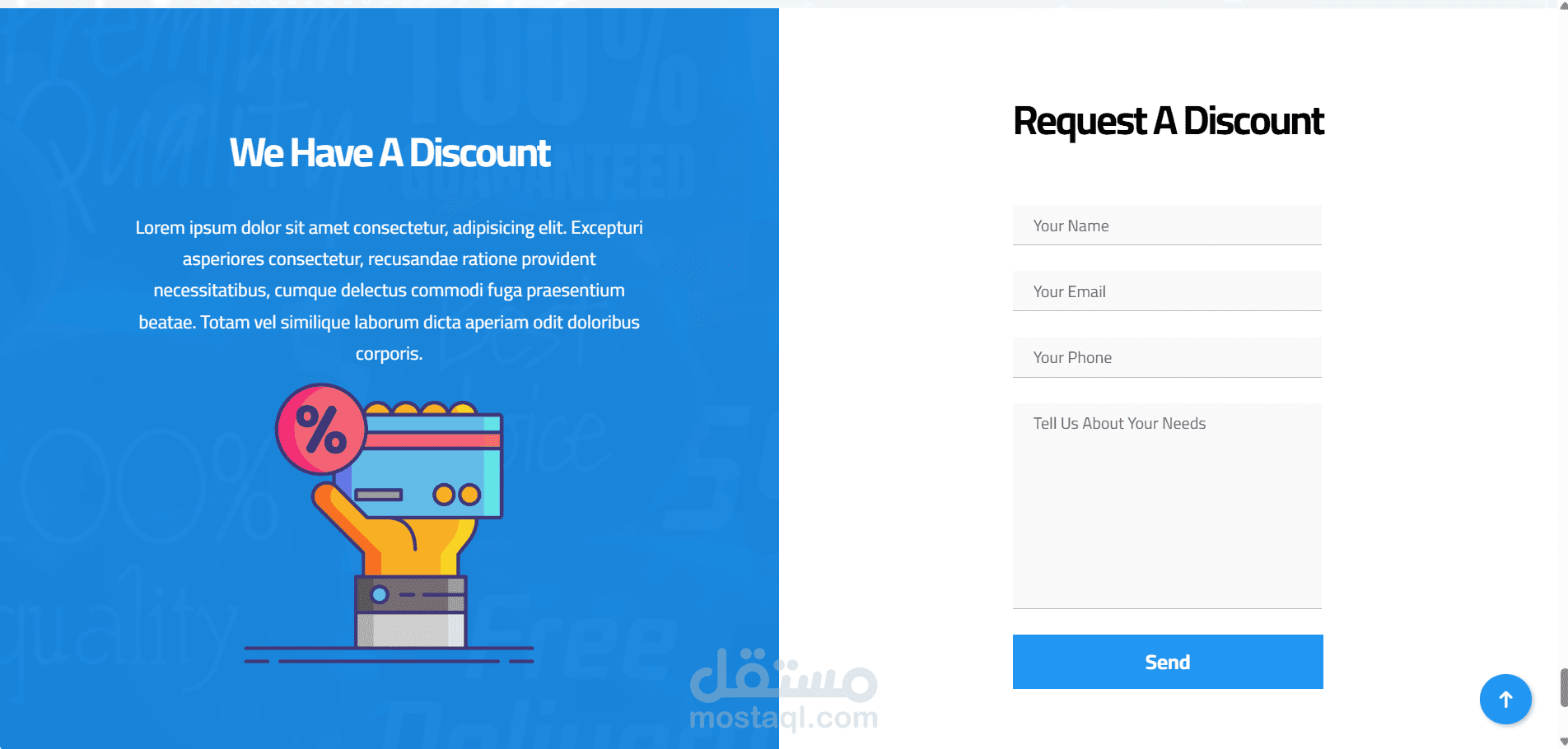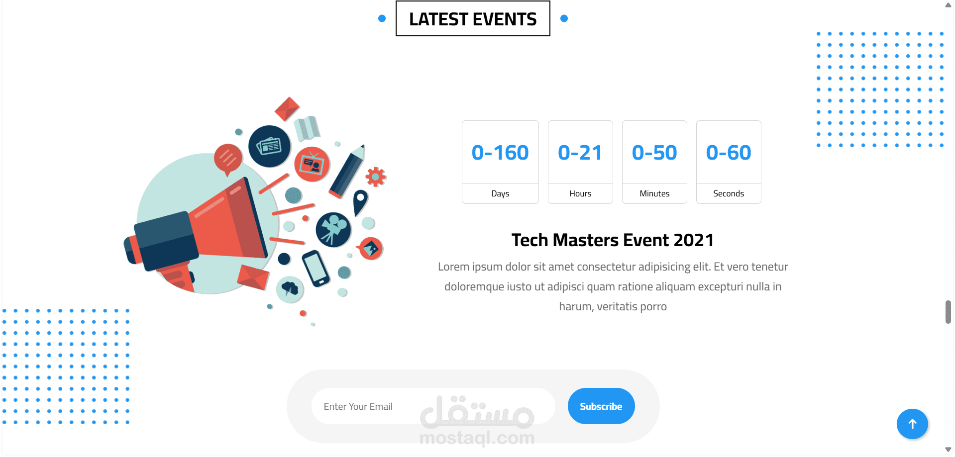 يتكون الموقع من صفحة واحدة متناسب مع جميع الشاشات متعددة الأقسام تشمل: