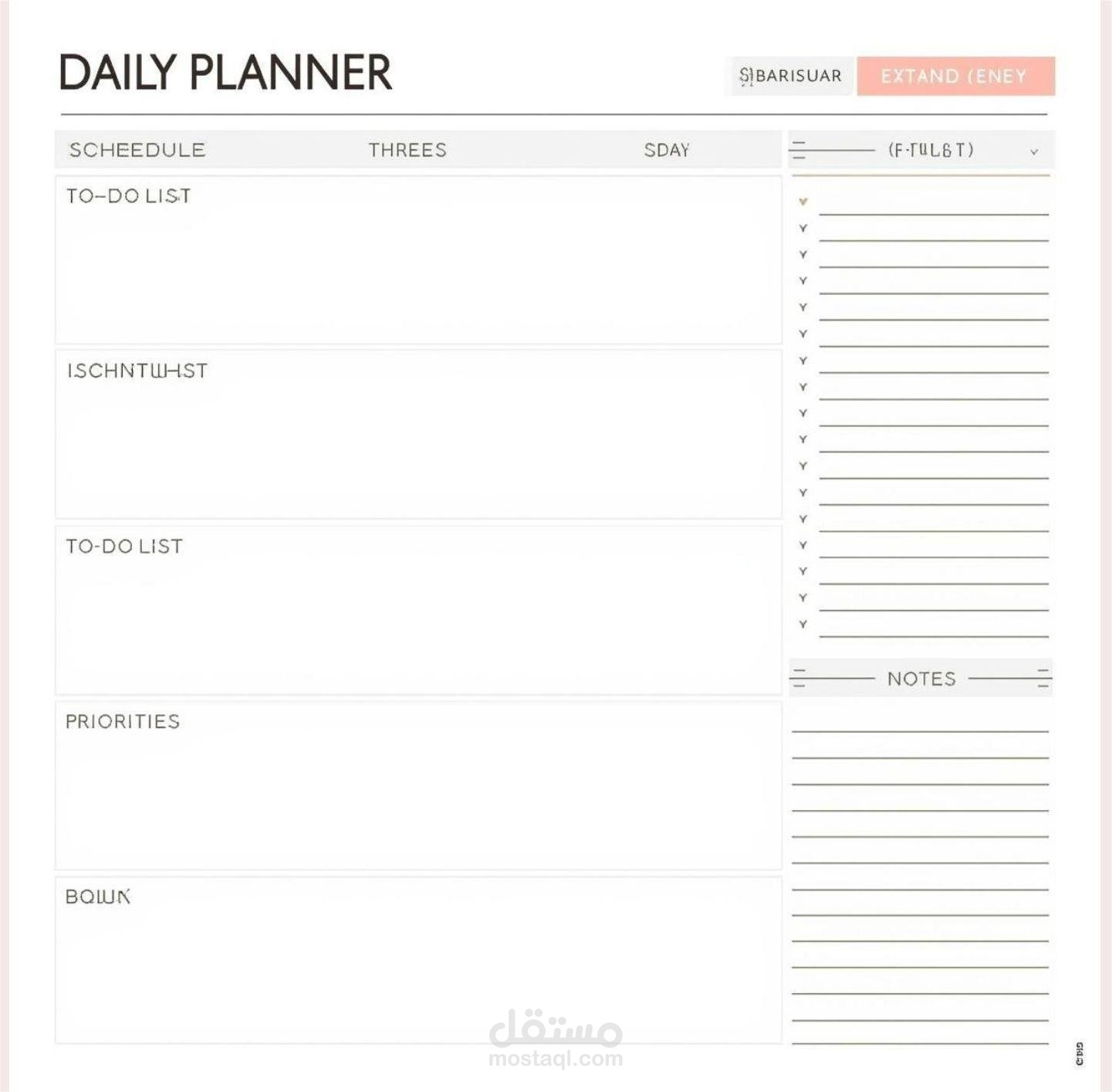 تصميم مفكرة مهام يومية (Daily Planner) بشكل احترافي وجاهز للطباعة.