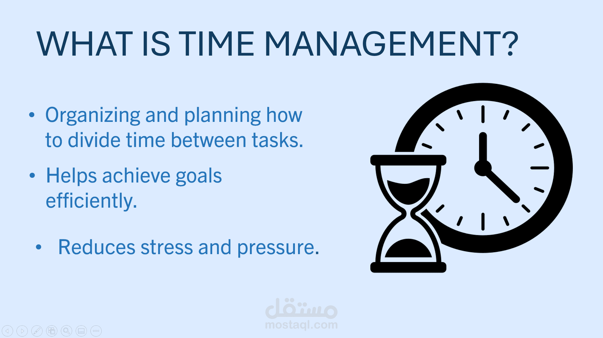 قمت بتصميم عرض تقديمي باستخدام PowerPoint بأسلوب منظم يركّز على وضوح الفكرة وسهولة متابعتها، مع الاهتمام بتنسيق الشرائح وترتيب المحتوى بشكل يخلي العرض يمشي بشكل طبيعي ومترابط. تم اختيار ألوان وخطوط متناسقة تعطي مظهر هادئ واحترافي بعيد عن الزحام، مع استخدام انتقالات (morph) عند الحاجة تساعد على عرض الفكرة بشكل تدريجي من غير مبالغة، بحيث يخدم التصميم المحتوى ويوصل الرسالة بشكل واضح.