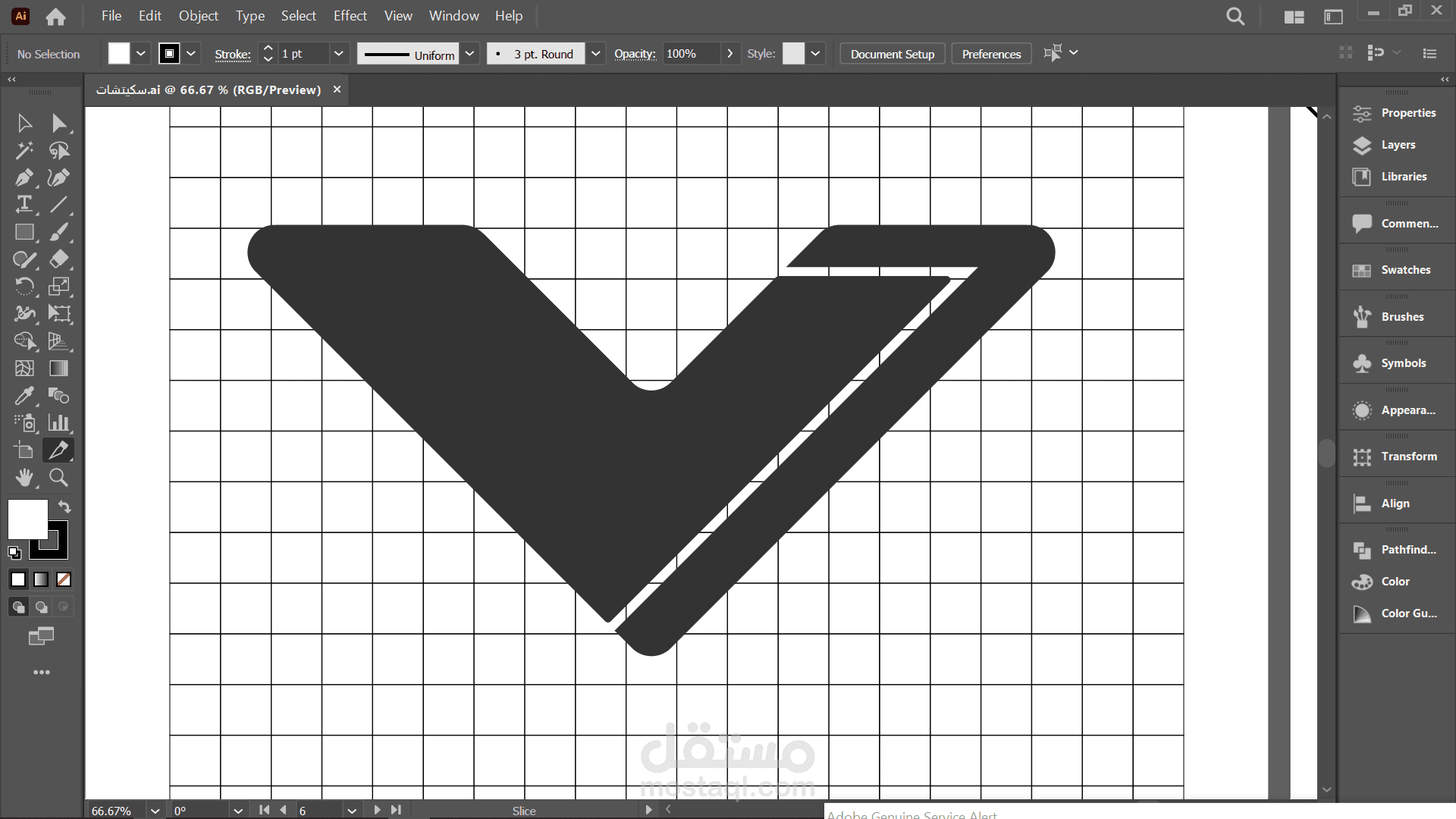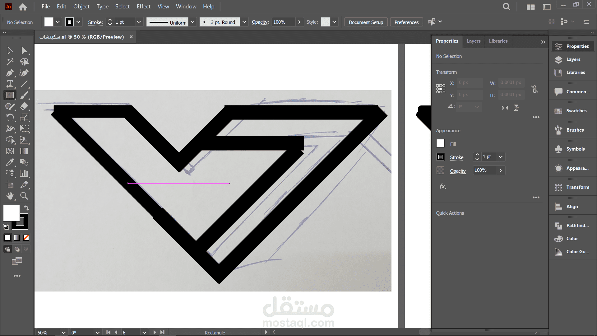 الصور 1 و 2: توضح بناء الشعار على Grid داخل Illustrator لضمان التوازن الهندسي والدقة المتناهية.