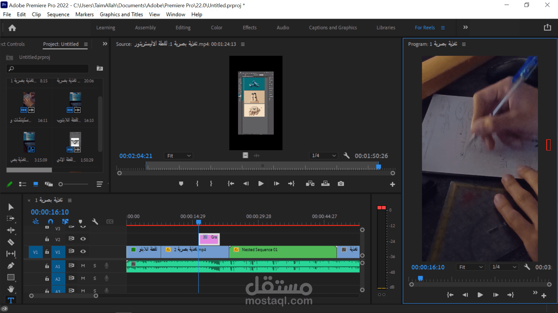 الصورة الثالثة: توضح مرحلة المونتاج والتحريك داخل Premiere Pro لإنتاج محتوى ترويجي يعكس فخامة العلامة التجارية.