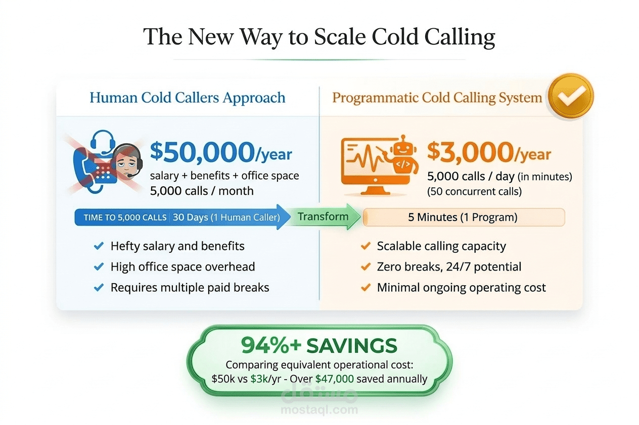 هذا نظام متكامل لوكلاء الاتصال بالذكاء الاصطناعي (AI Calling Agents). يقوم سير العمل بسحب البيانات تلقائياً من جداول بيانات Google أو قواعد بيانات MySQL، ثم يتم إرسال طلب HTTP عبر n8n إلى منصة Vapi.ai لبدء مكالمات صوتية واسعة النطاق (بقدرة تصل إلى 50 مكالمة متزامنة وأكثر). يقوم النظام باسترداد سجلات Vapi.ai، ويتم استخدام لغة Javascript لمعالجة بيانات المكالمات وحساب أوقات إعادة الاتصال الدقيقة بناءً على التوافر. يتم تحديث حالة المكالمة في قاعدة البيانات، وإرسال تنبيه للفريق عبر Slack للمتابعة. هذا النظام يقوم بالعمل الذي يتطلبه فريق كامل، مما يوفر ما بين 12 إلى 15 ساعة لكل دفعة تشغيل. ملاحظات على الترجمة: تم استخدام مصطلح "وكلاء الاتصال" ليعبر عن "Calling Agents" بشكل دقيق. تم الحفاظ على المصطلحات التقنية (HTTP, n8n, Vapi.ai, Javascript) كما هي لضمان الوضوح في الوسط التقني. تمت صياغة الجملة الأخيرة بأسلوب يبرز القيمة التجارية (ROI) للمشروع.