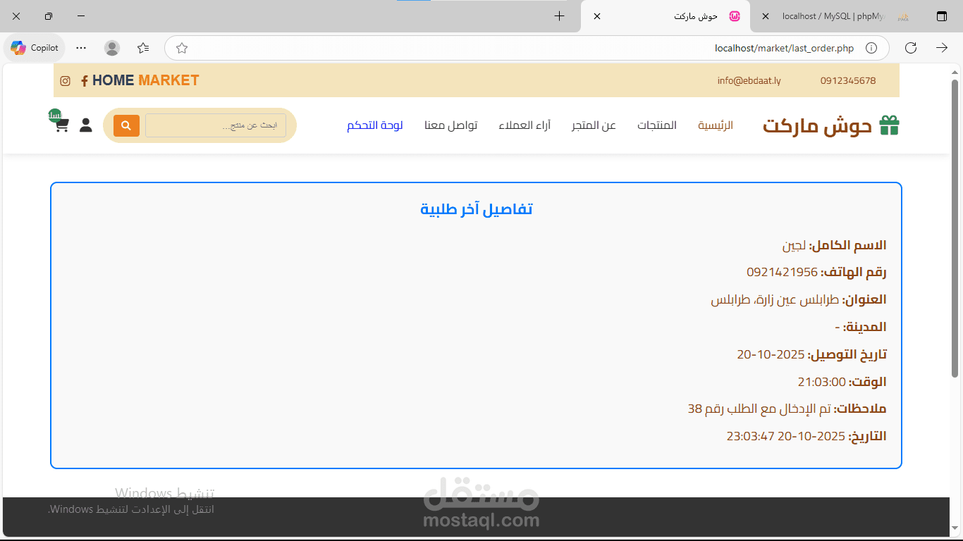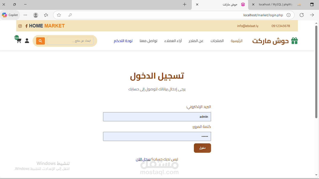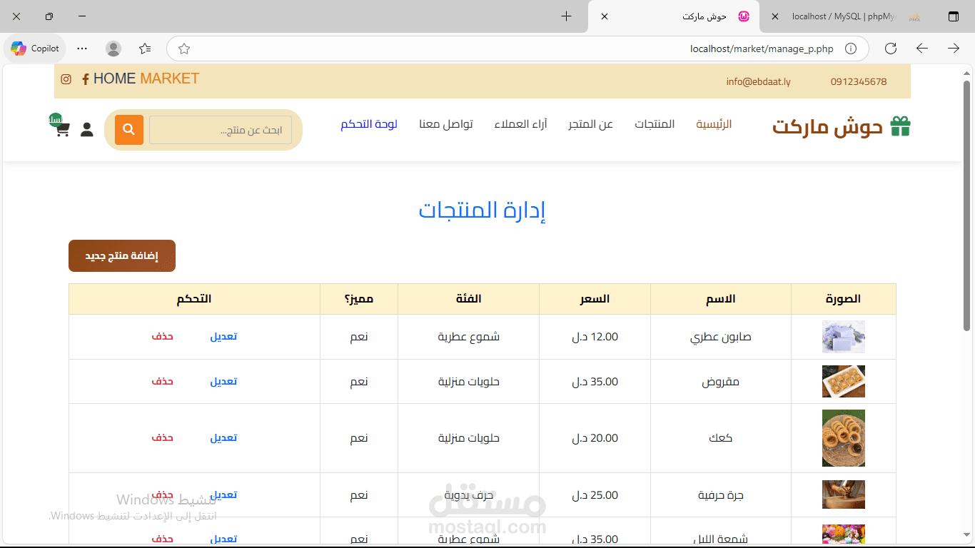 موقع الاول من نوعه في ليبيا يدعم نشر و تسويق و بيع المصنوعات المنزلية و يدعم مشاريع صغيرة المنزلية يشتغل بسيرفر محلي و ليس لهو Domain Name بعد