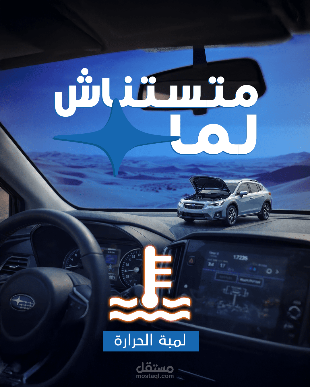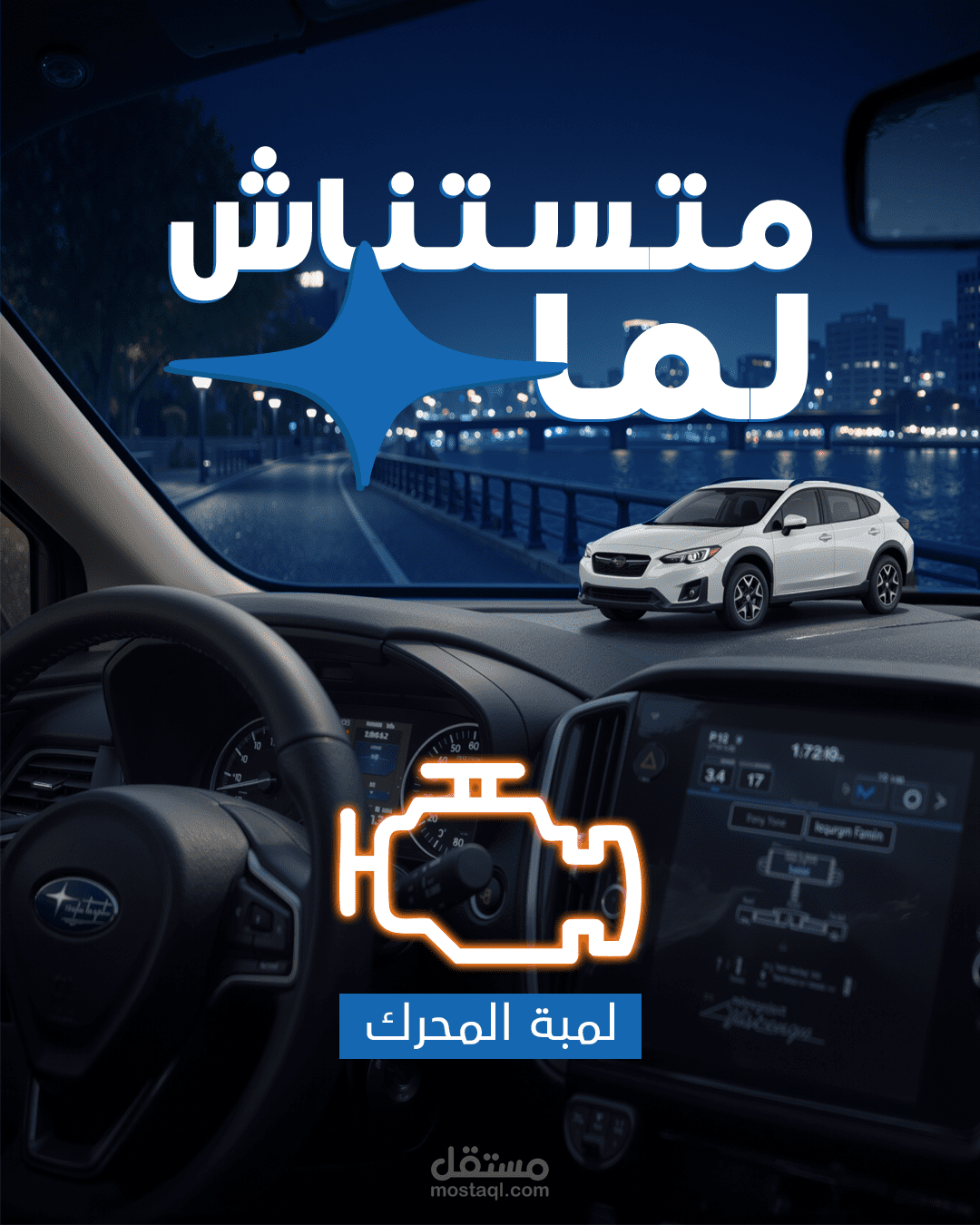 The concept focuses on awareness — translating a subtle engine issue into a clear visual alert, combining a calm night driving scene with a strong glowing engine icon to emphasize urgency without losing aesthetic balance.