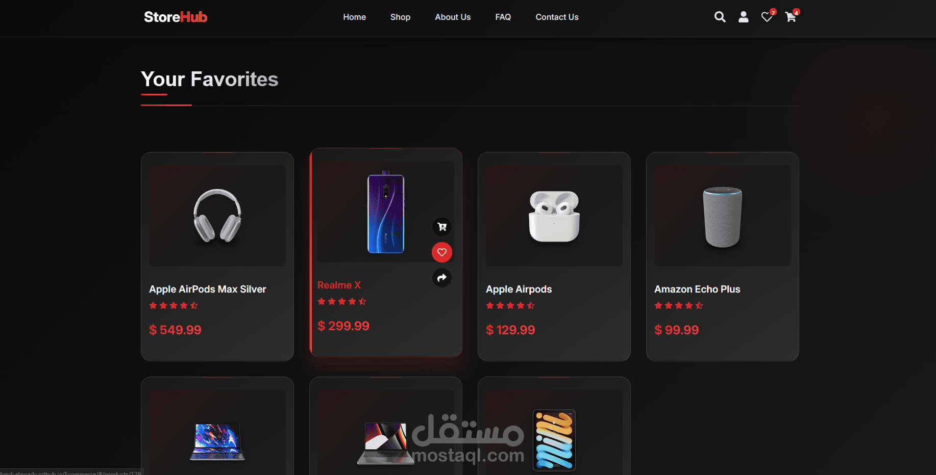 إضافة المنتجات للمفضلة والكارت