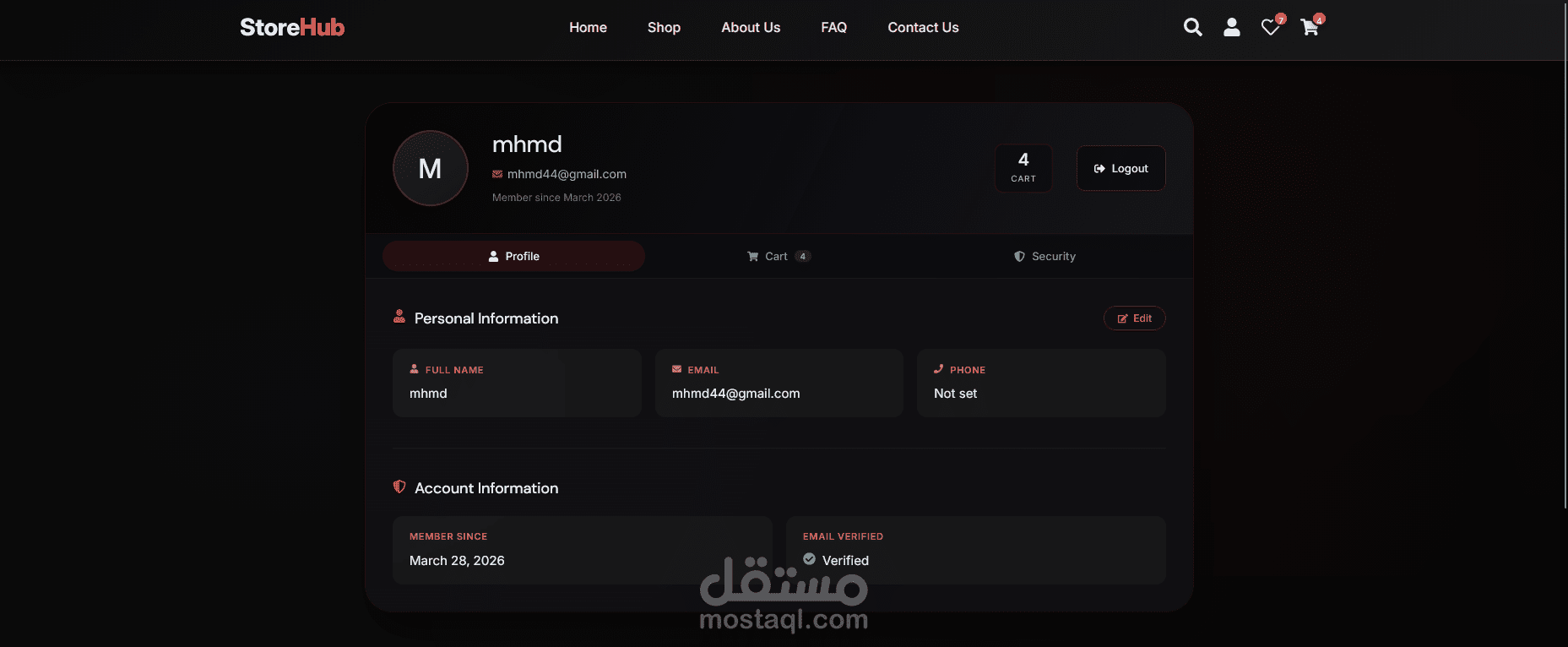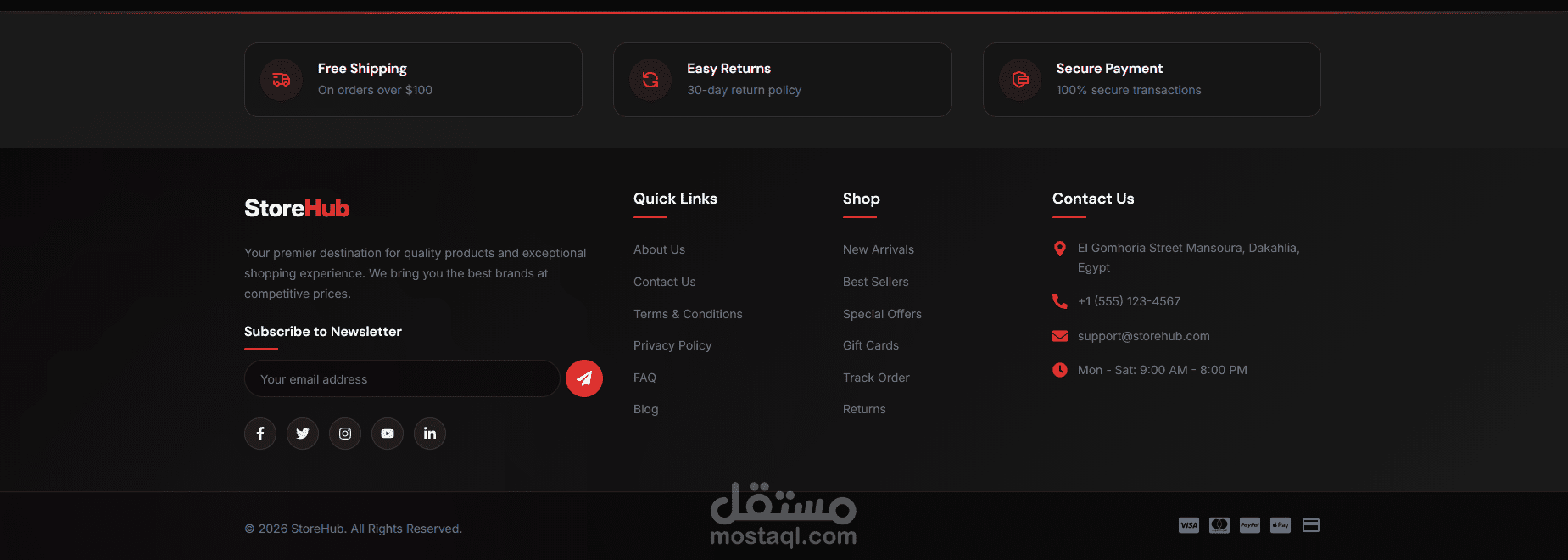 مشروع StoreHub هو متجر إلكتروني كامل معمول عشان يقدّم تجربة شراء سهلة وسريعة لأي حد عايز يشتري أونلاين.