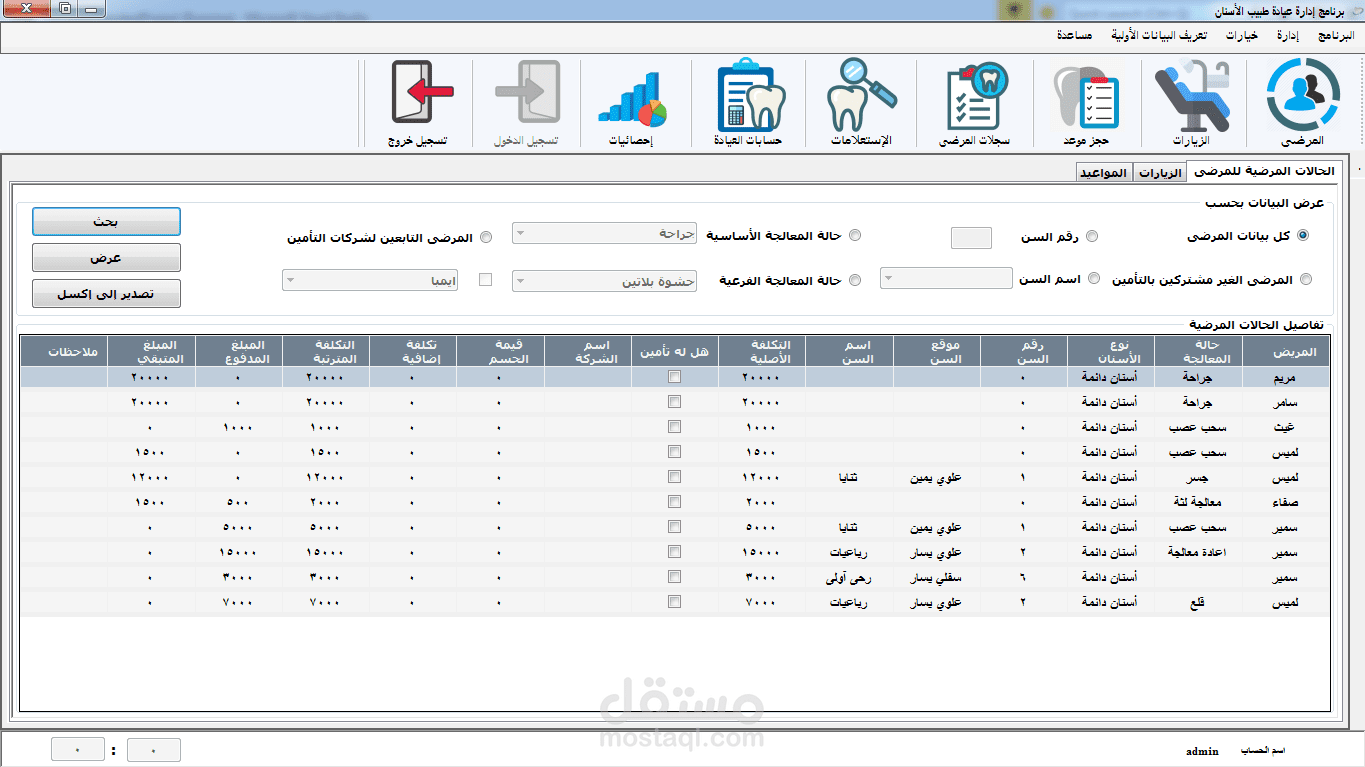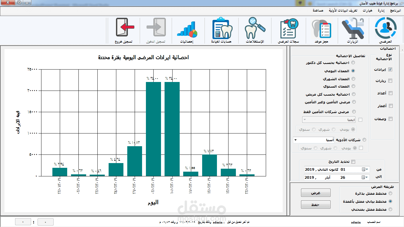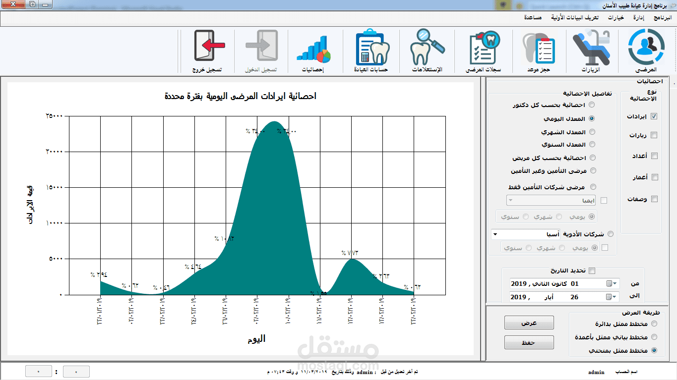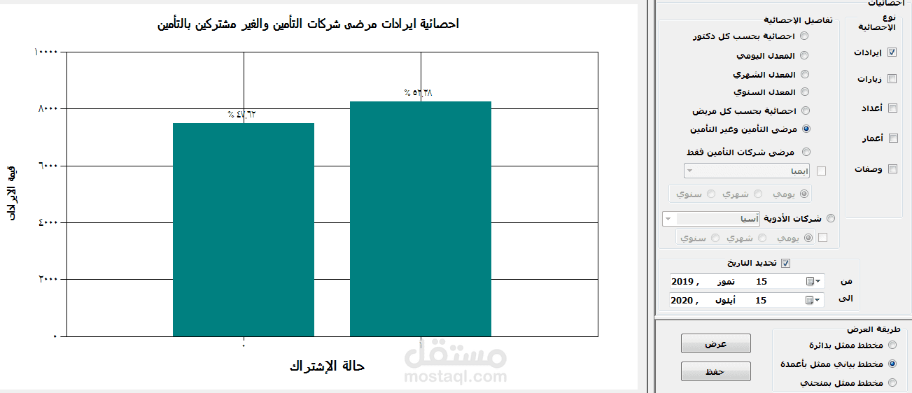 8- يقدم البرنامج كافة الإحصائيات بما يخدم عمل العيادة