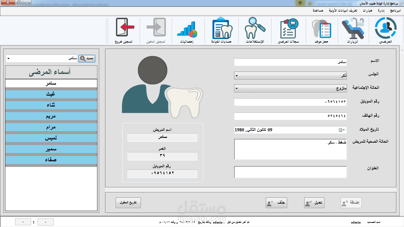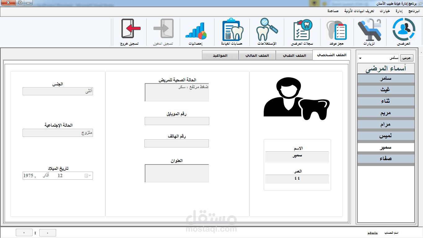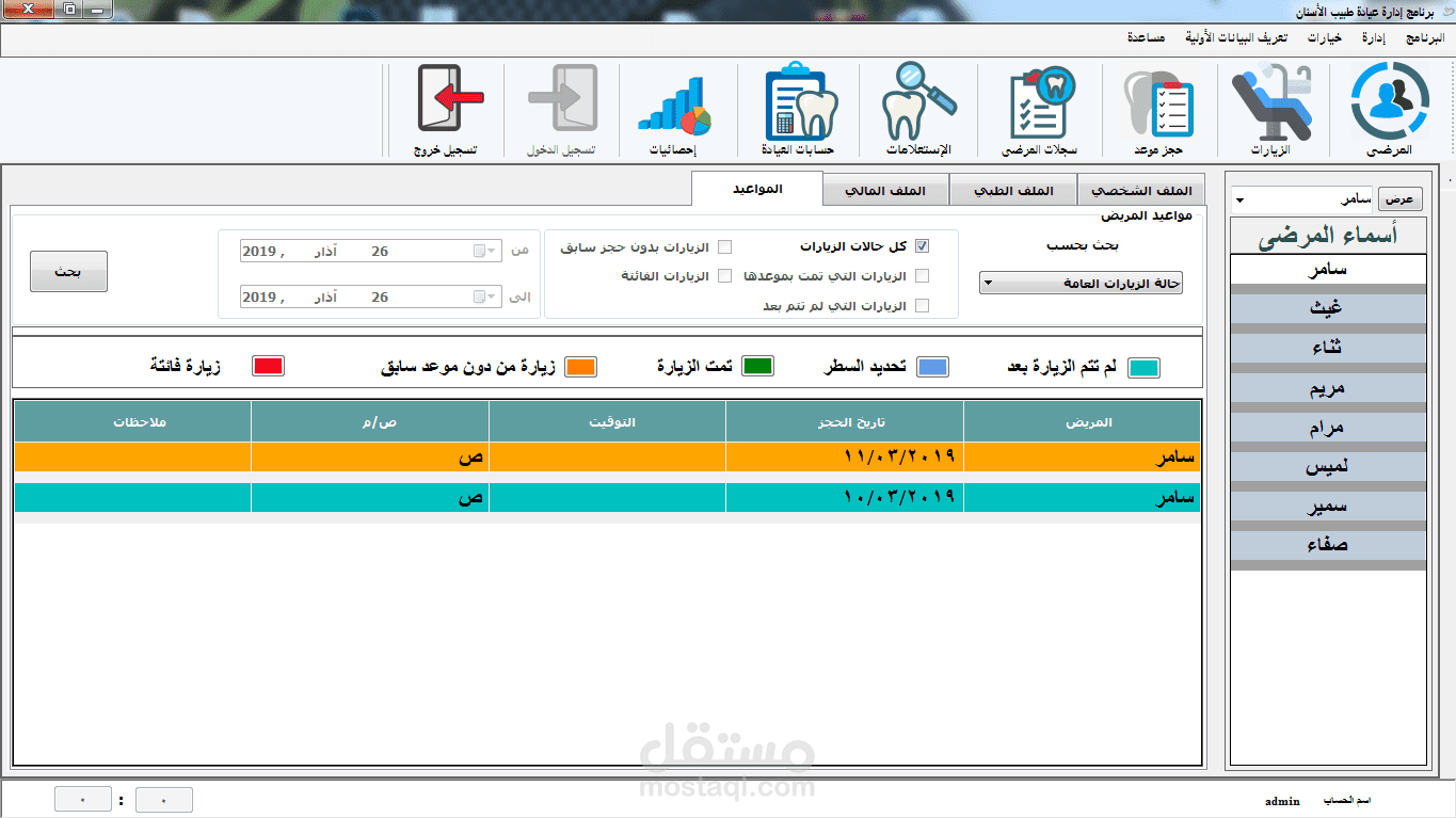 8- يقدم البرنامج كافة الإحصائيات بما يخدم عمل العيادة