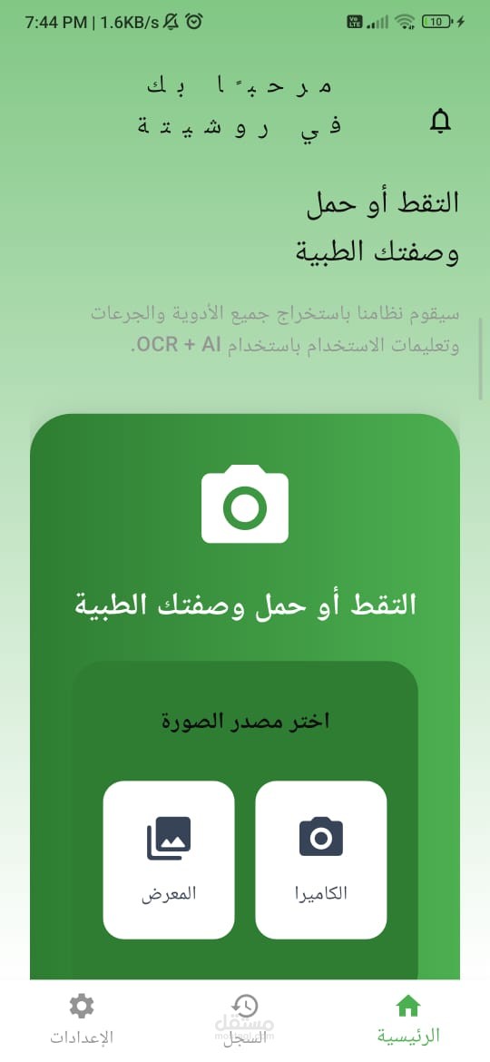 روشيته هو تطبيق تم انشاءه باستعمال فلاتر مصمم لتبسيط إدارة الوصفات الطبية.