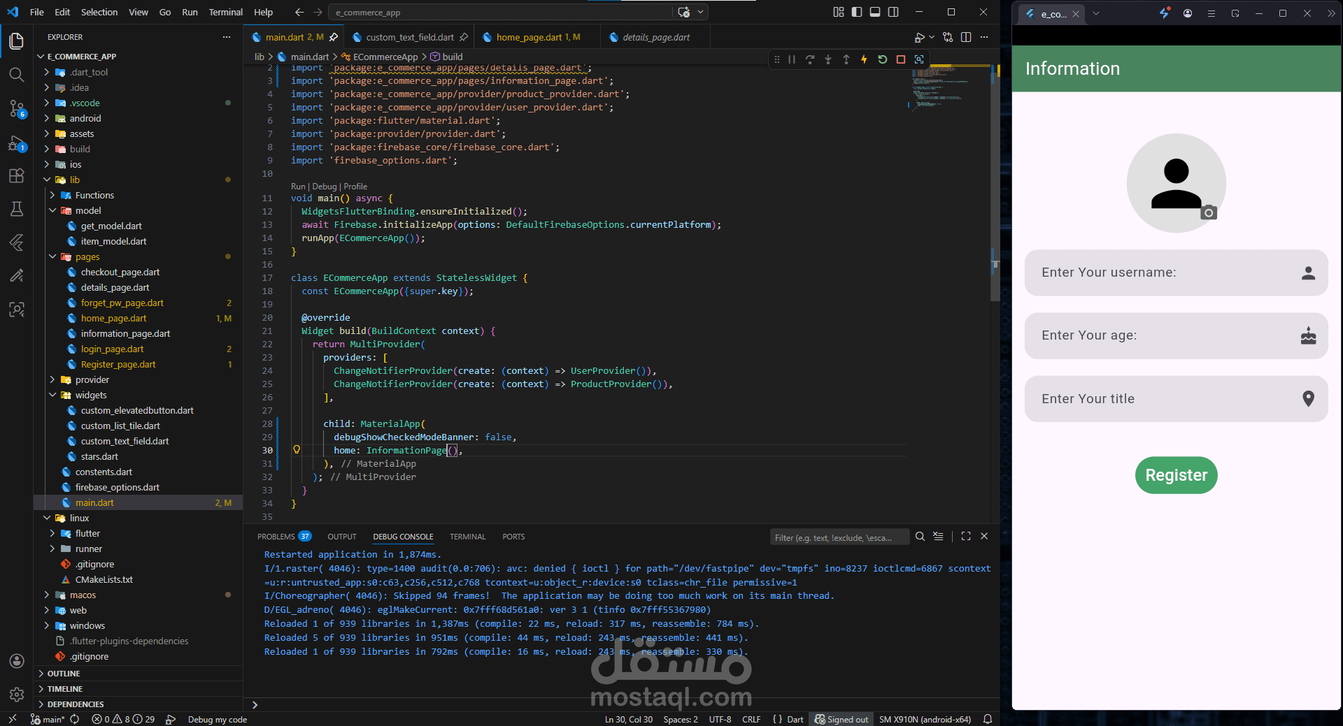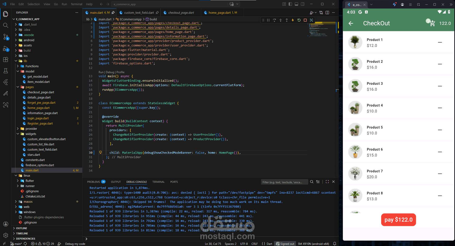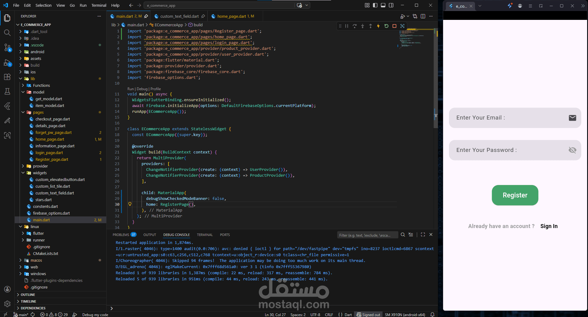 تطبيق تجارة إلكترونية تم تطويره باستخدام Flutter، مع استخدام Firebase Authentication لإدارة تسجيل الدخول وإنشاء الحسابات بشكل آمن. يتيح التطبيق تصفح المنتجات وإضافتها إلى السلة بسهولة، مع تجربة مستخدم بسيطة وسلسة. تم الاهتمام بالأداء وتنظيم الكود لضمان قابلية التطوير مستقبلًا.