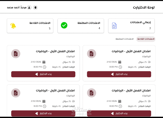 أقدم خدمة تطوير منصة تعليمية متكاملة (E-learning Platform) تتيح لك إنشاء وبيع الكورسات أونلاين باحترافية عالية، مع تجربة استخدام سهلة ومناسبة لجميع المستخدمين.