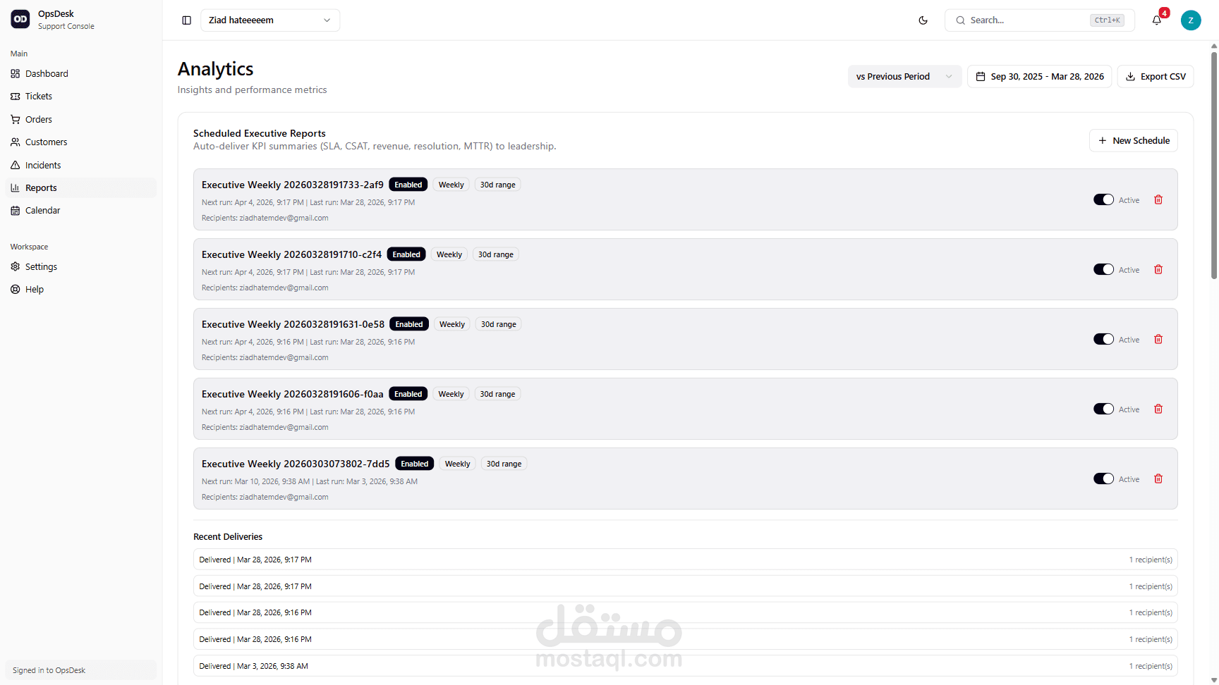 طورت منصة Operations متعددة المؤسسات (Multi-Tenant) مخصصة لبيئات B2B من الصفر، وتوليت تنفيذ الواجهة الأمامية والخلفية والتصميم بهدف إنشاء نظام يجعل سير العمل اليومي للفرق أكثر تنظيمًا، وقابلية للتوسع، وكفاءة.