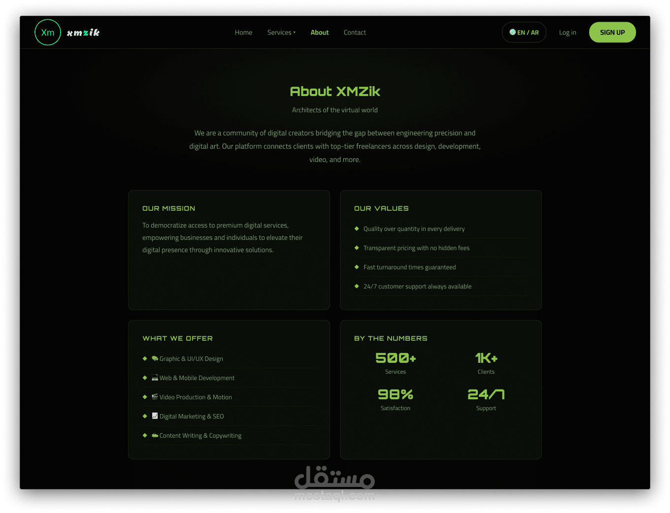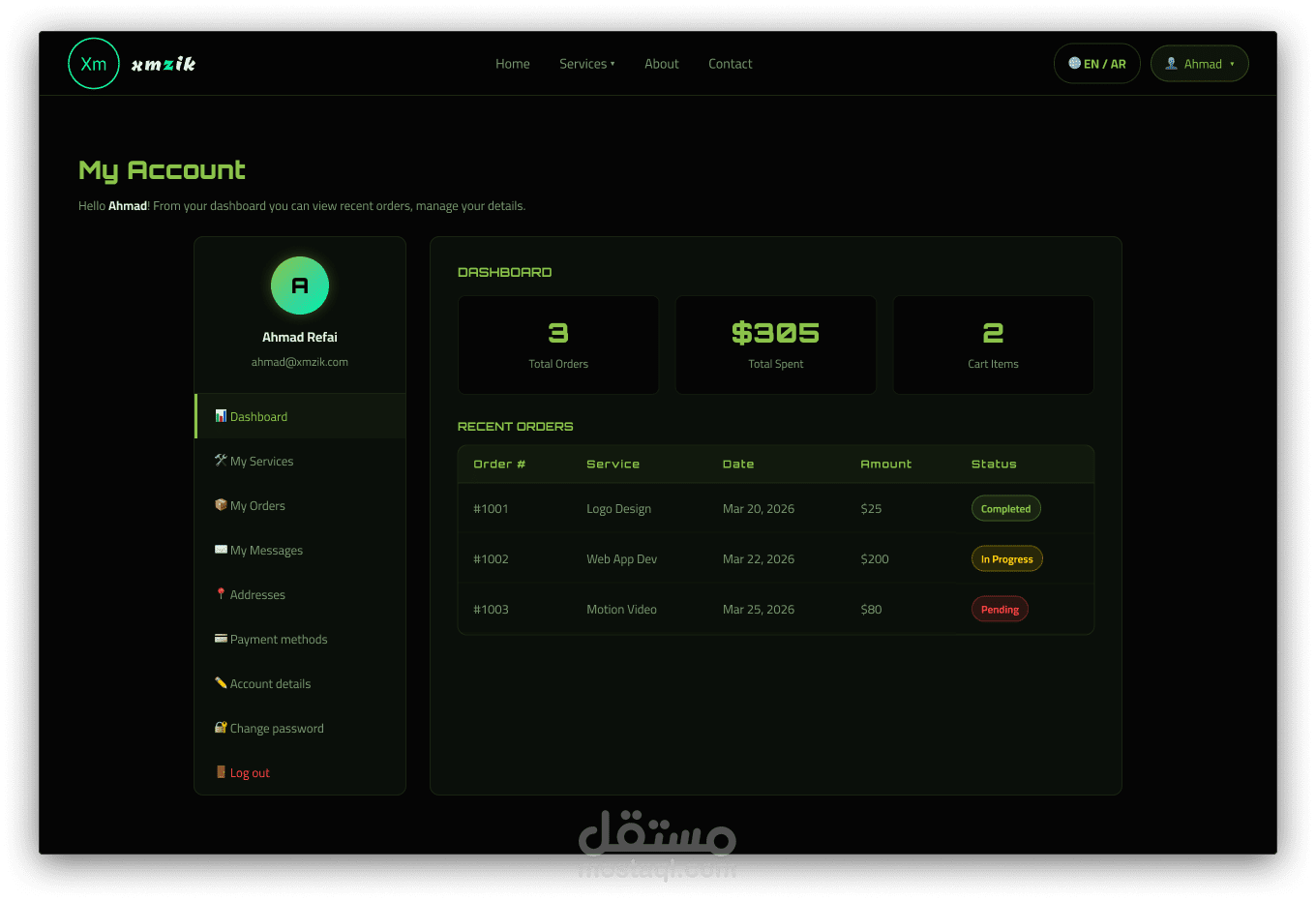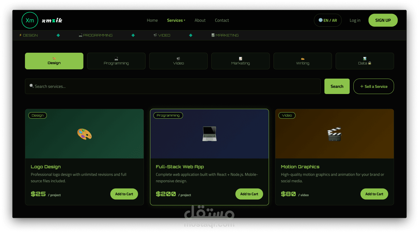بناء موقع ويب من الصفر باستخدام (HTML, CSS, JS) مع واجهة مستخدم (UI) احترافية. الموقع يتميز بسرعة التحميل، والتوافق التام مع الشاشات، وربط بوابات الدفع (مثل Stripe/PayPal).