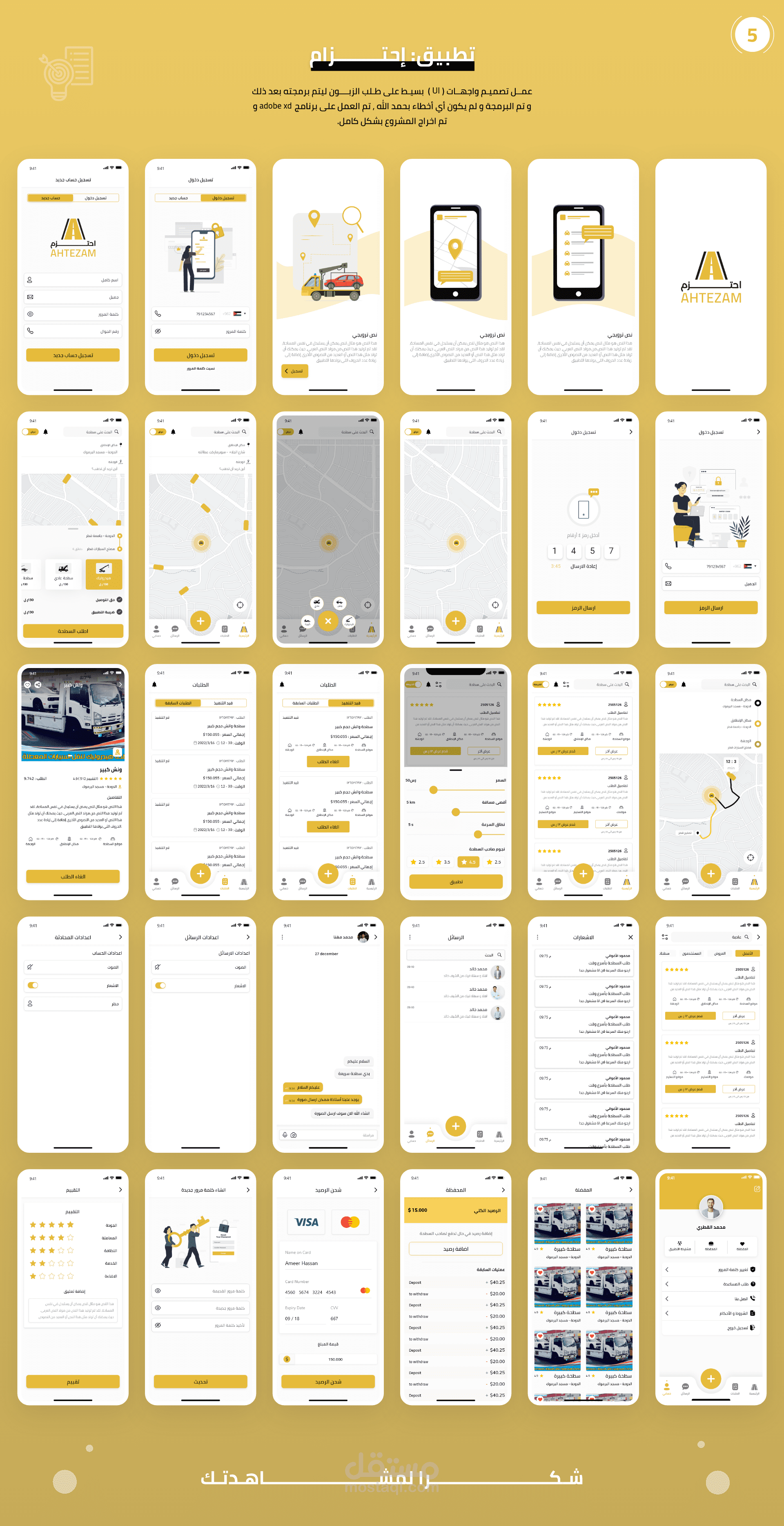 تطبيق حجز سطحة هو منصة رقمية متطورة تتيح للمستخدمين طلب خدمات نقل وسحب السيارات في حالات الطوارئ بطريقة تفاعلية وسريعة مع تحديد دقيق للموقع وتتبع لحظي للخدمة، حيث تم تصميم الواجهات بأسلوب عصري يركز على سرعة الاستجابة وسهولة الوصول للمساعدة لضمان تجربة مستخدم موثوقة في الأوقات الحرجة، وقمت بتصميم هذا المشروع بشكل كامل من الفكرة حتى النموذج النهائي مع التركيز على بناء تجربة مستخدم احترافية وتصميم واجهات مبتكرة تحقق أهداف المشروع وتوفر تجربة استخدام سلسة وعصرية.