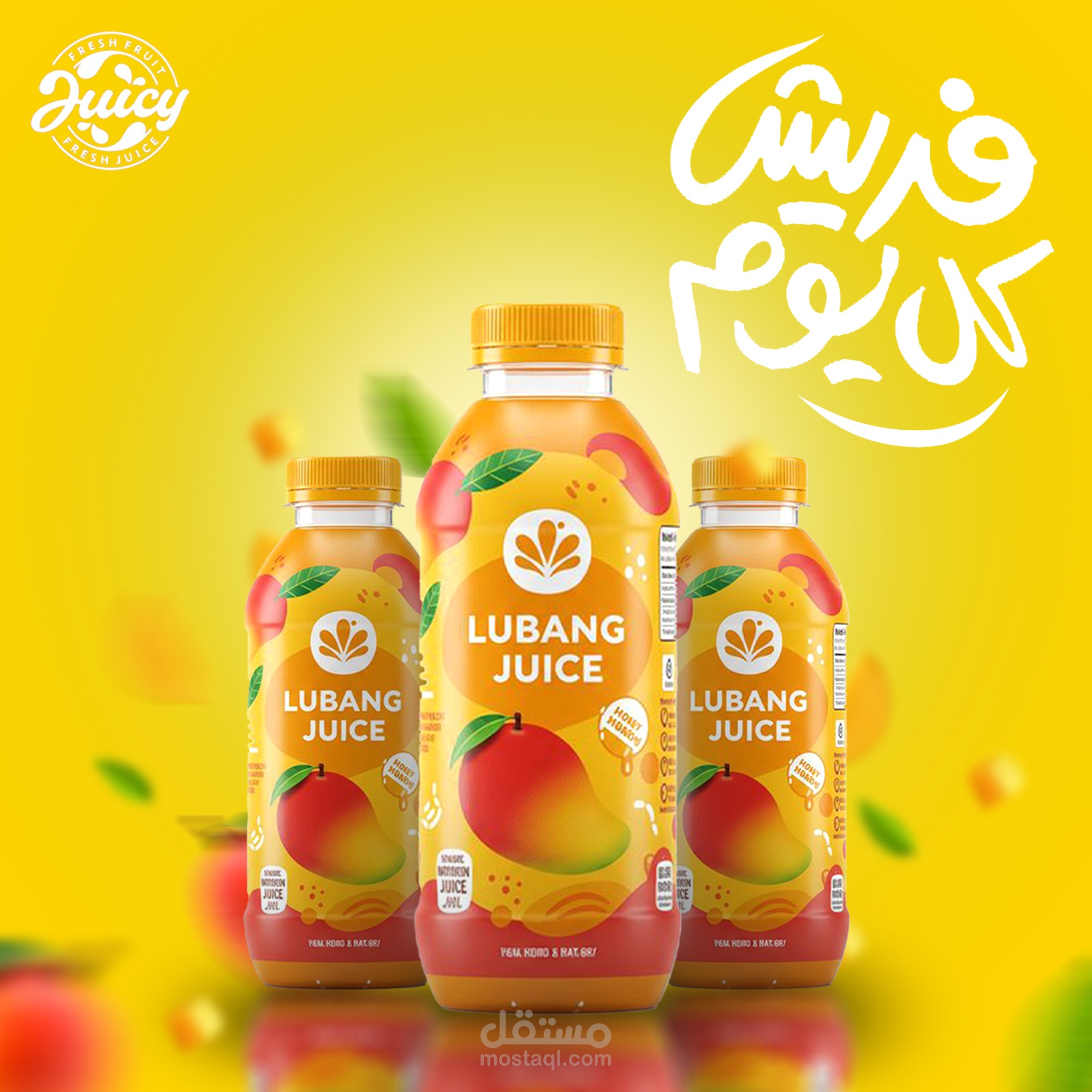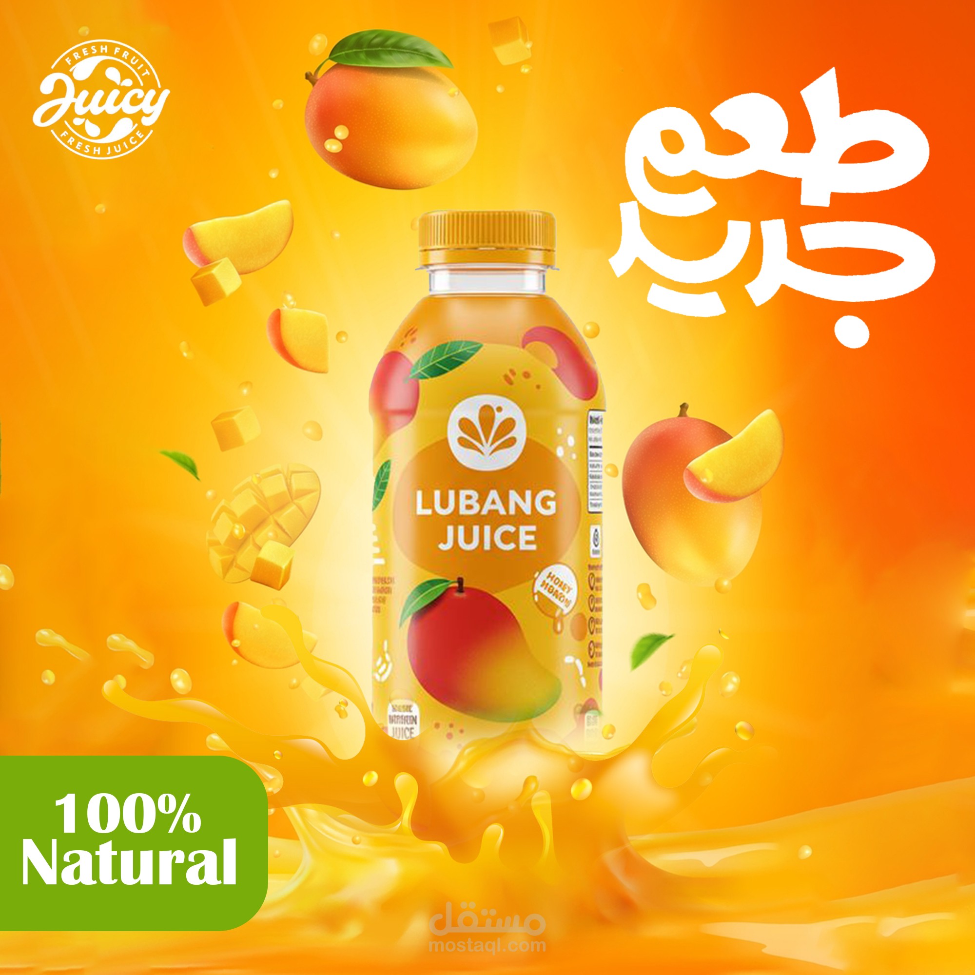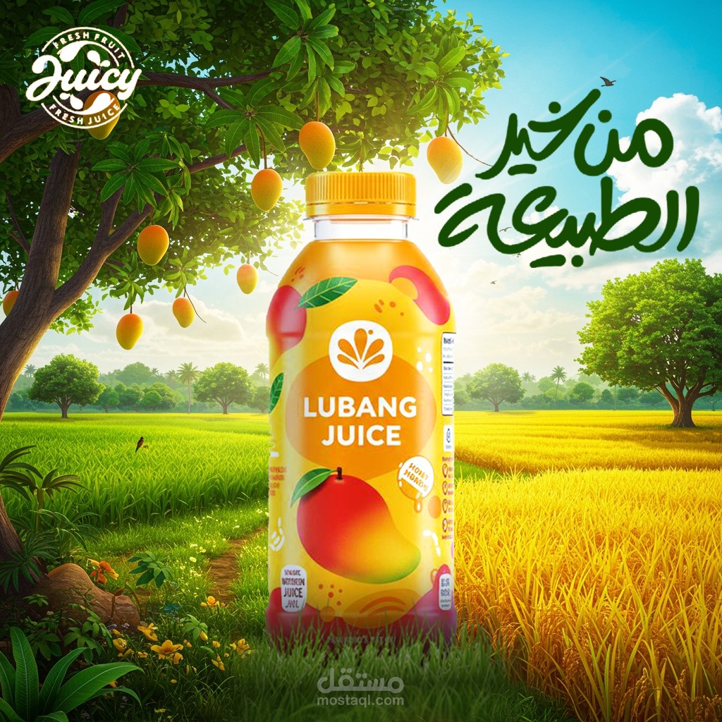 دمج الصور (Compositing): دمجت صور المانجا الفريش مع رشات الميه (Water Splashes) عشان أحسسك بانتعاش العصير.