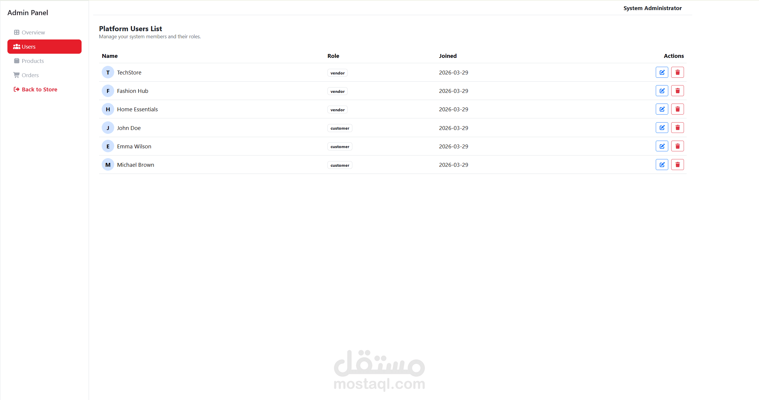 عمل Admin Dashboard للتحكم ب ال users,customers,and users