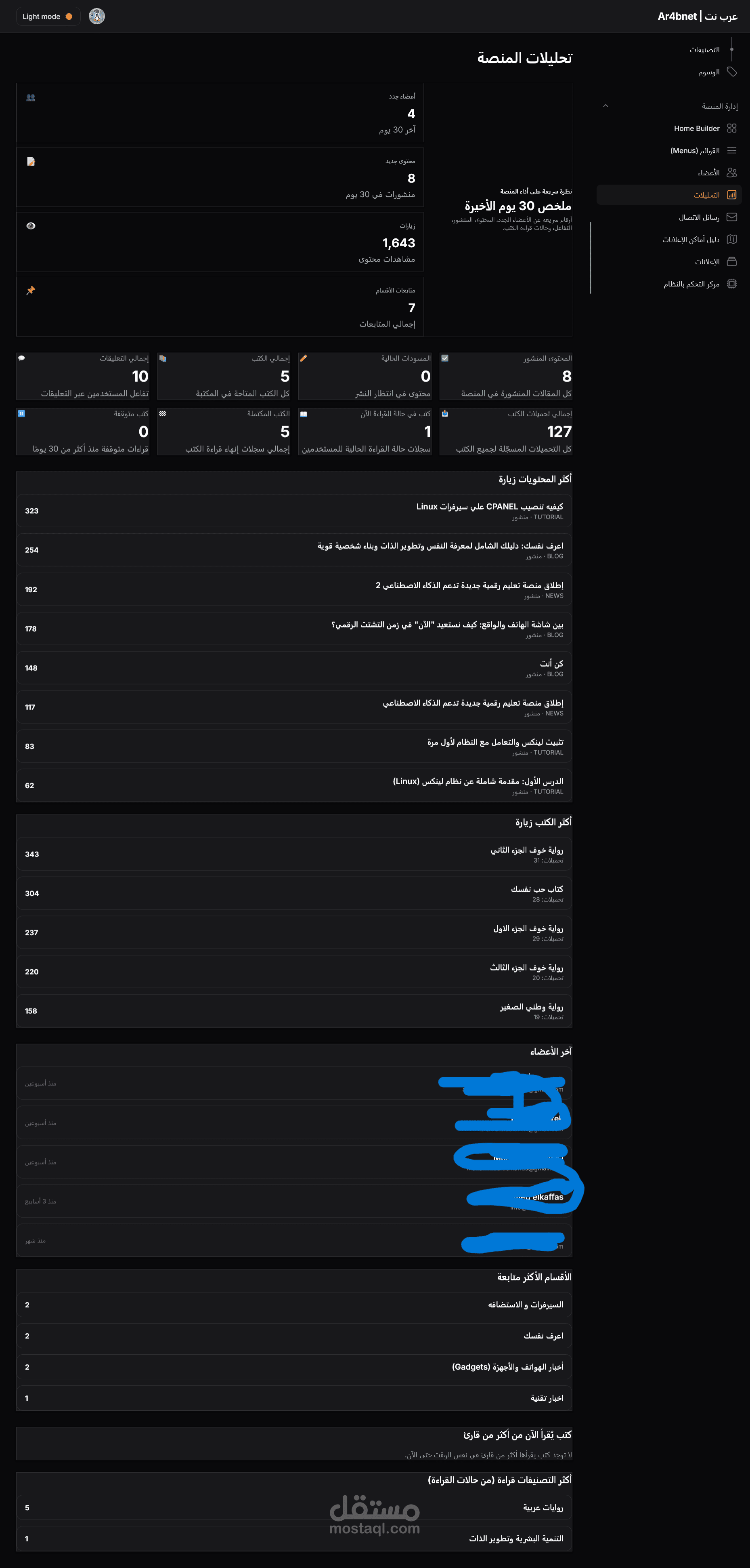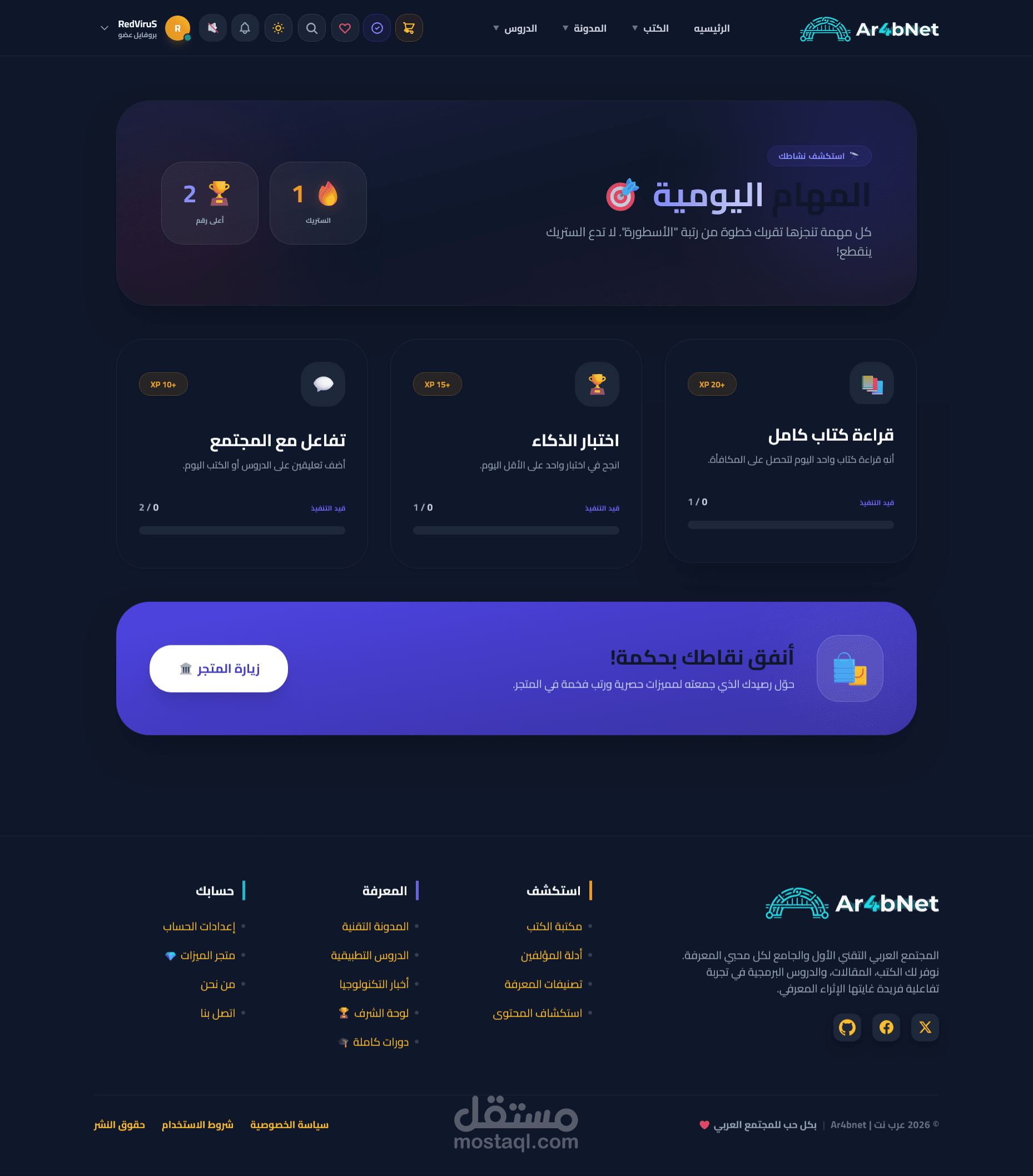 عرب نت (Ar4bnet) منصة عربية للمعرفة والتقنية: تجمع المكتبة الرقمية، الأخبار، المدونة، والدروس في تجربة واحدة، مبنية على Laravel ولوحة إدارة Filament وواجهة Blade وTailwind، مع تركيز على RTL وتجربة قراءة مريحة.