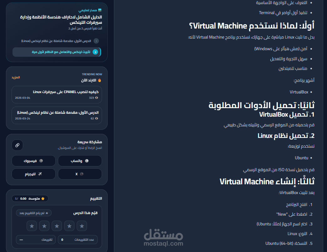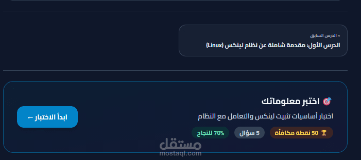 تُعرض الأخبار والمدونة والدروس ضمن نظام موحّد، مع سلاسل تعليمية وترتيب دروس وتنقّل بين أجزاء السلسلة، وربط اختبارات تفاعلية بالدروس مع تصحيح فوري ونقاط ومكافآت.