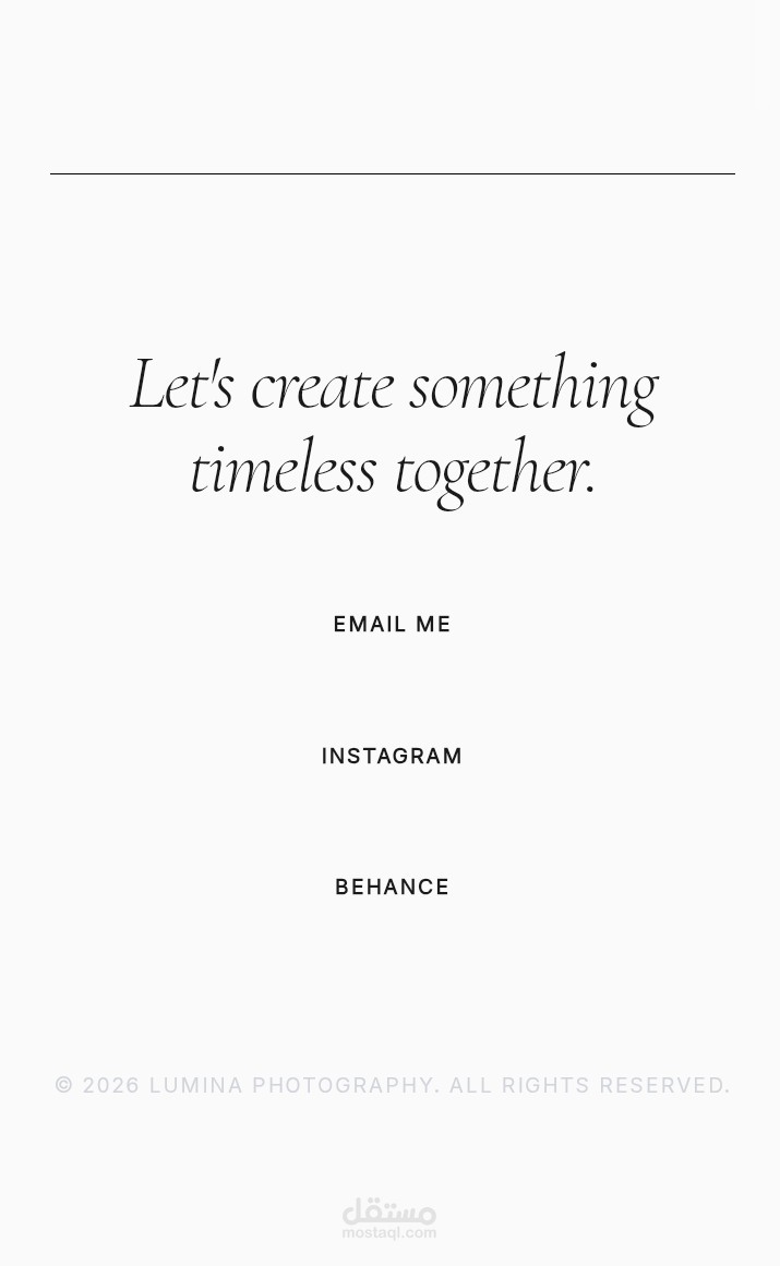تصميم وتطوير صفحة هبوط (Landing Page) عصرية ومبسطة مخصصة للمصورين والفنانين البصريين تحت اسم "Lumina". يركز المشروع على إبراز المحتوى الصوري من خلال تنسيق شبكي (Grid Layout) غير تقليدي يجمع بين الفخامة والبساطة.
