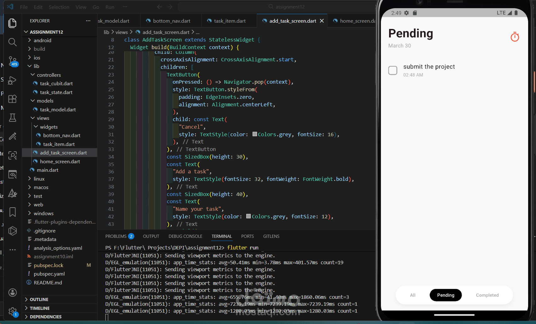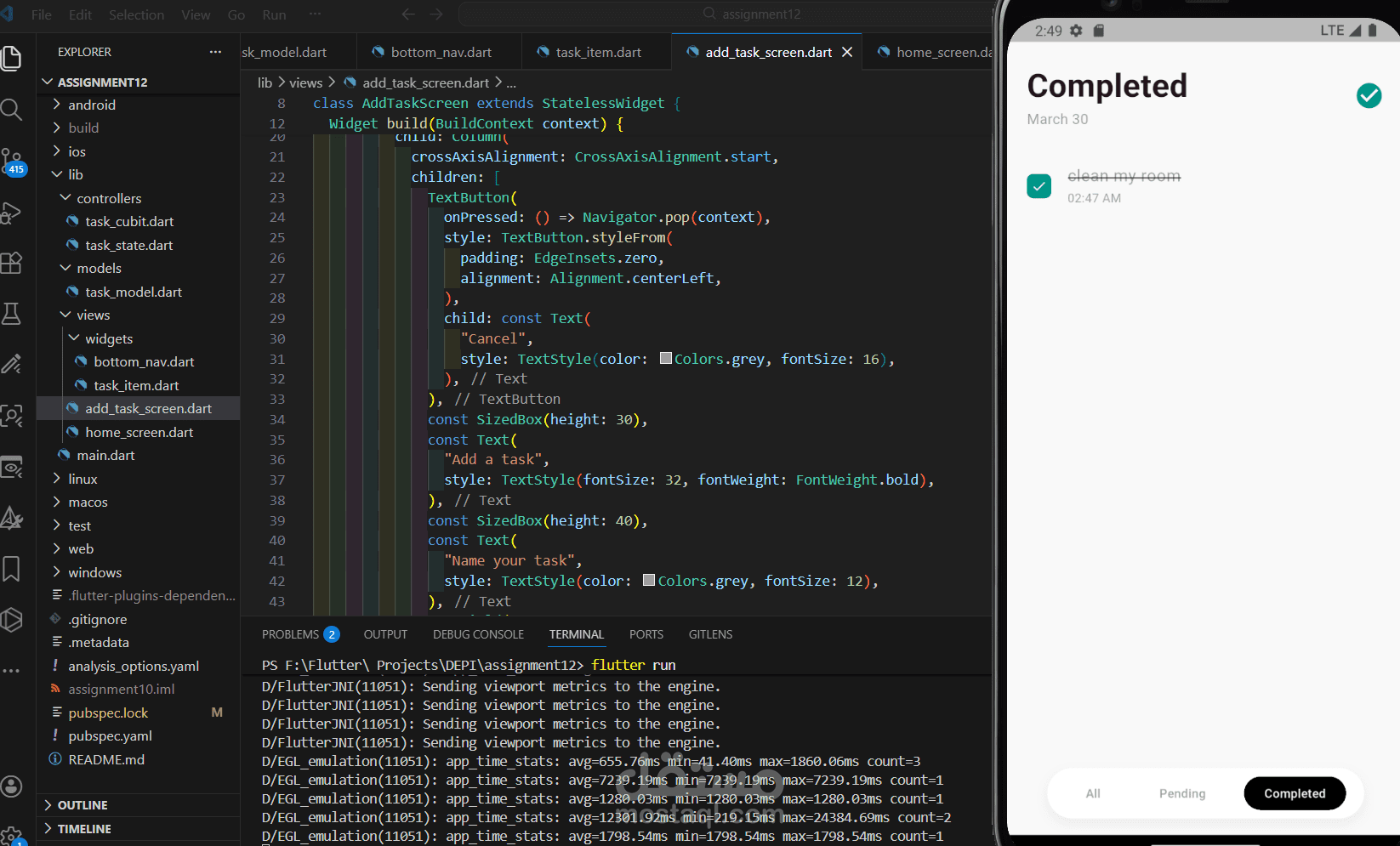 طورت تطبيق موبايل To-Do List باستخدام Flutter و Dart، والهدف منه مساعدة المستخدمين على تنظيم مهامهم اليومية بطريقة بسيطة وسهلة الاستخدام.
