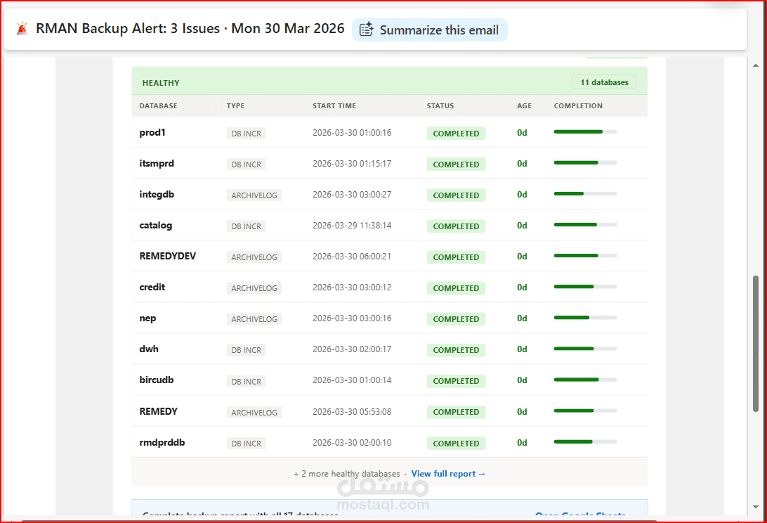اسم المشروع: هندسة نظام أتمتة متقدم لمراقبة مرونة النسخ الاحتياطي (Advanced Backup Automation Sytstem)