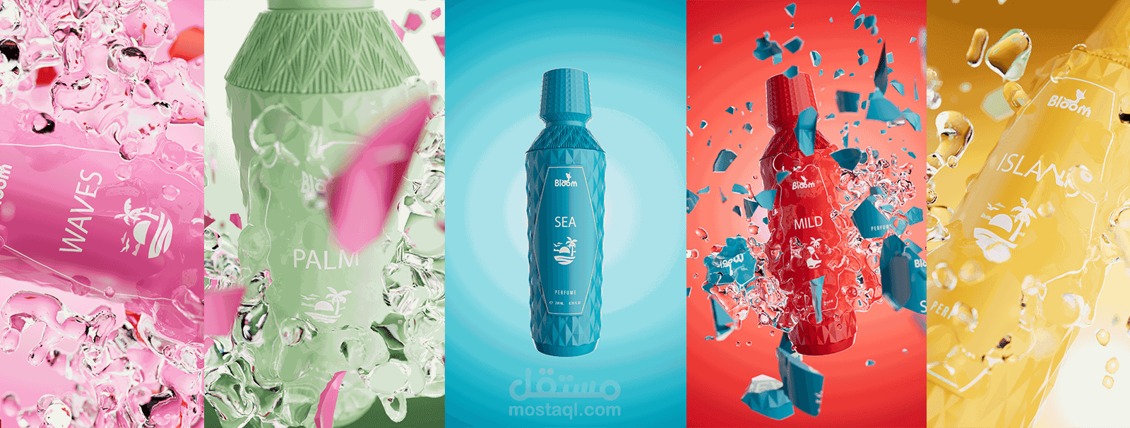 One perfume breaks to reveal another surrounded by water light and summer energy.