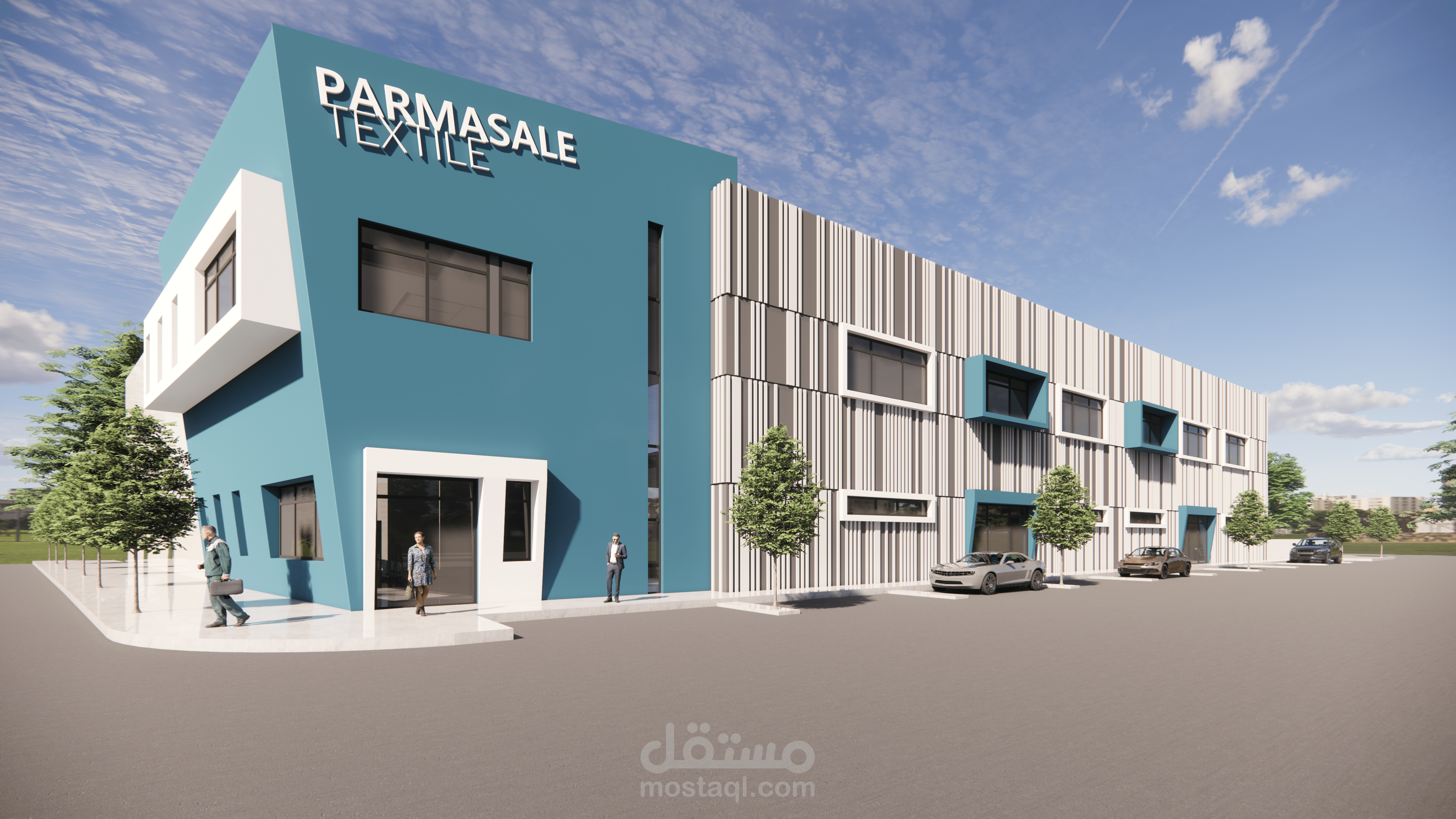 منطقة الاستقبال والشحن: مدخل واسع لتسهيل دخول المواد الخام وخروج البضائع الجاهزة.