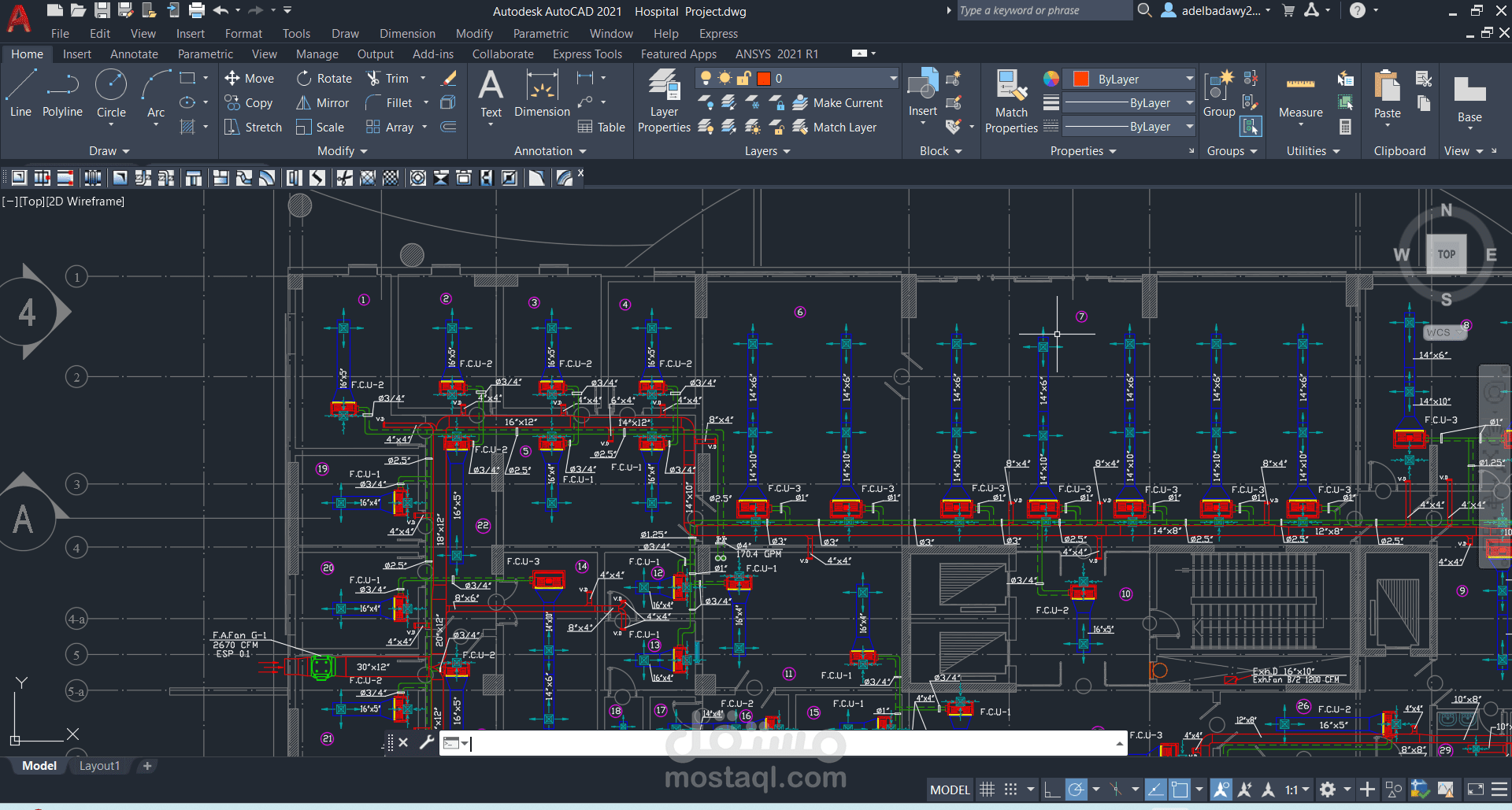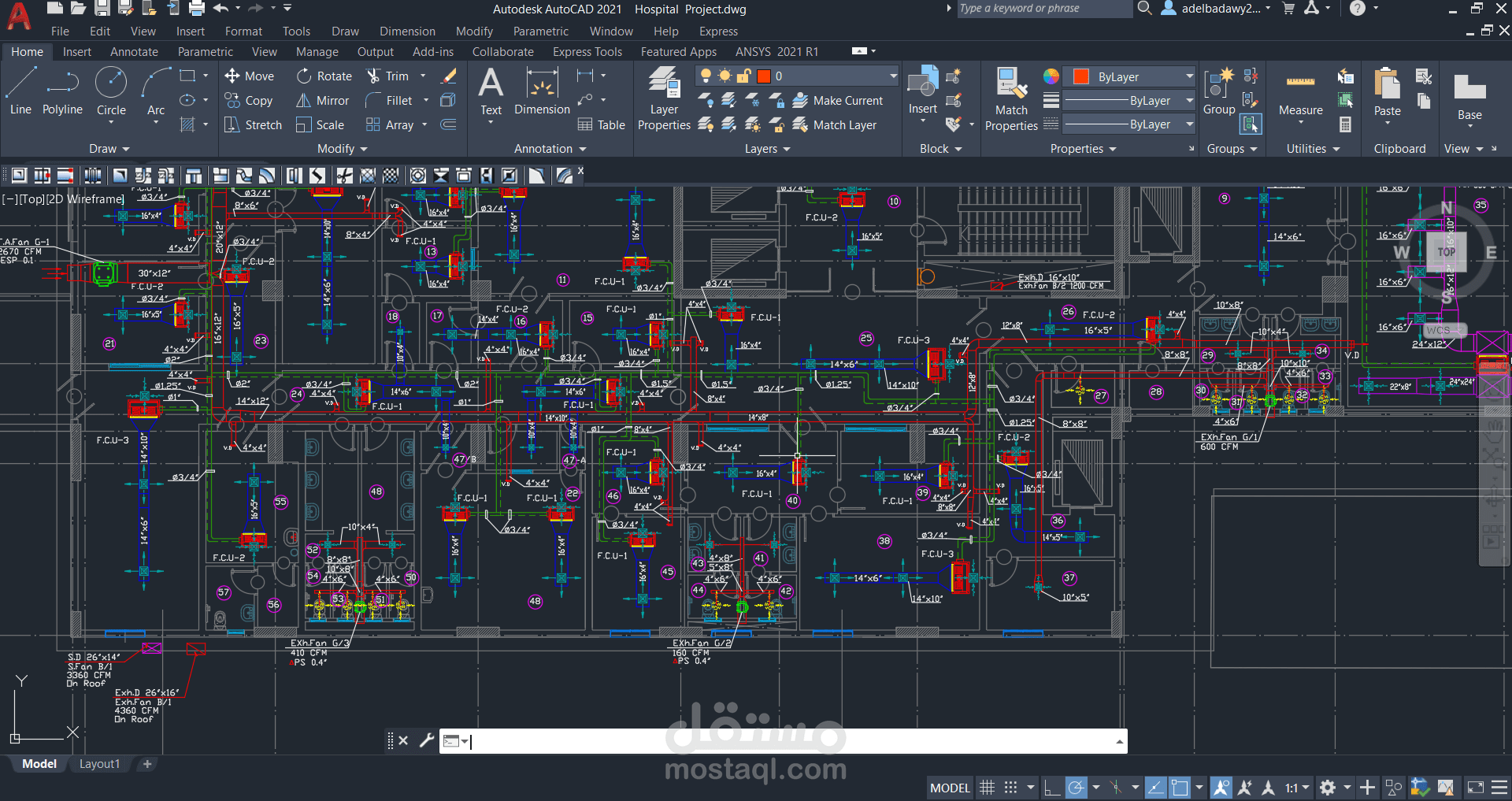 قمت بتصميم نظام HVAC كامل لمستشفى باستخدام برنامج AutoCAD، وفقًا للمعايير الهندسية المعتمدة لضمان كفاءة التهوية وجودة الهواء داخل المنشآت الطبية.