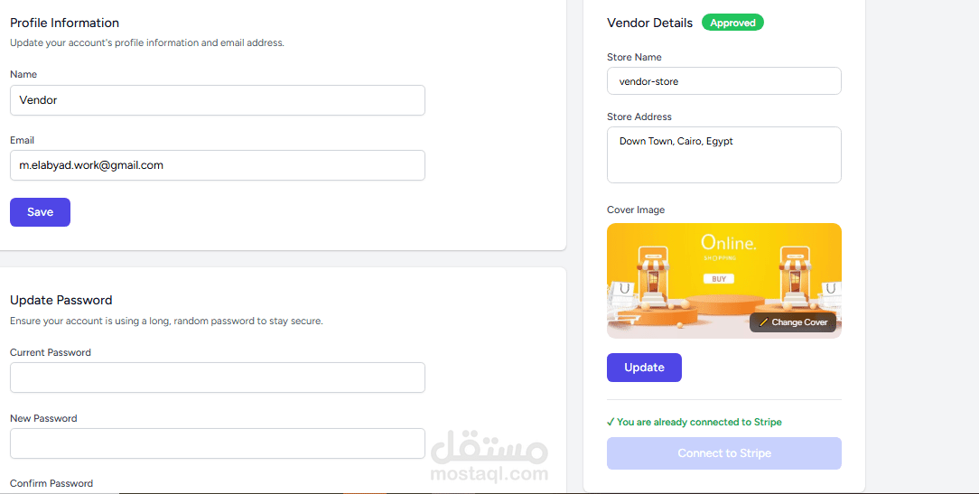 ✅ البائع بيدير اسم متجره وعنوانه وصورة الغلاف من لوحة تحكم خاصة