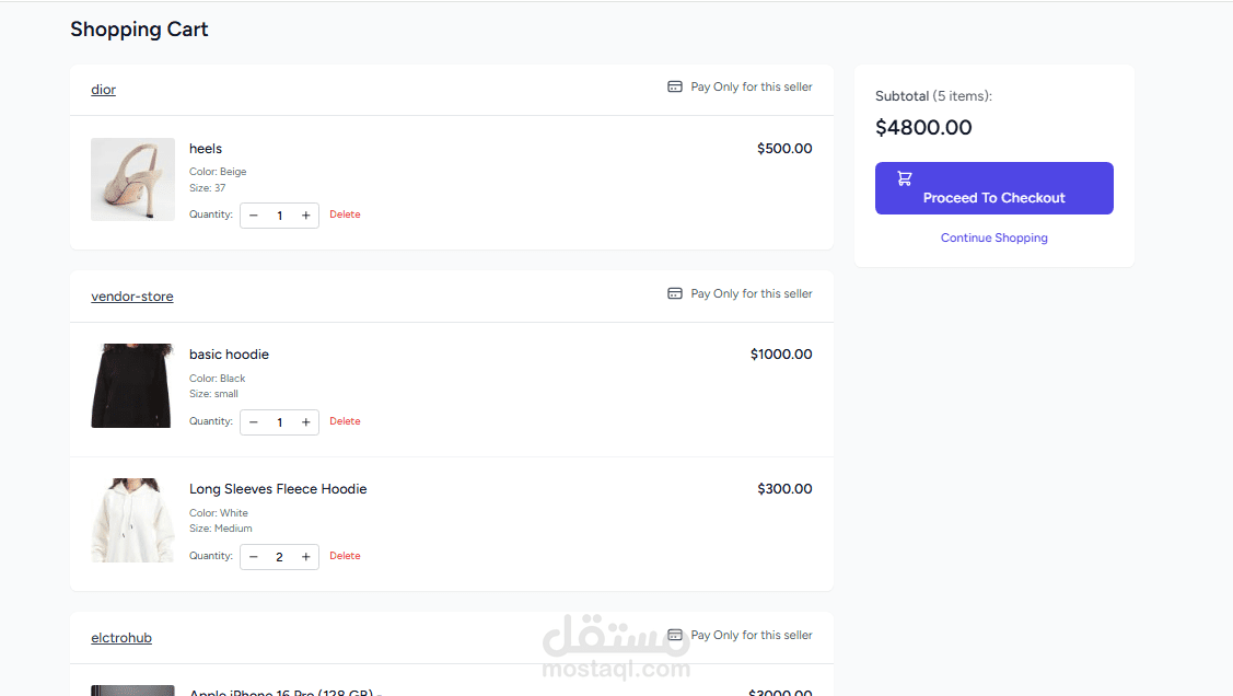 ✅ عناصر السلة مجمعة بالبائع لتجربة Checkout واضحة ومنظمة
