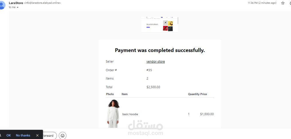 ✅ إيميل للعميل بعد الدفع — بيتضمن تفاصيل كل طلب مع صور المنتجات والأسعار
