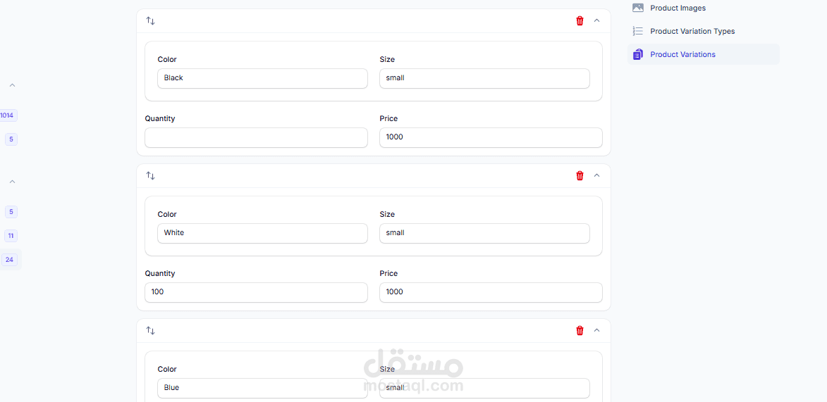 ✅ نظام متغيرات المنتج (مقاس، لون، خامة) — كل تركيبة بسعر ومخزون مستقل