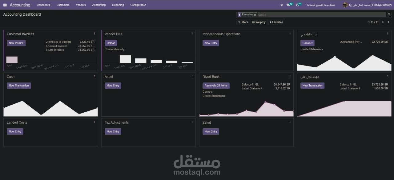Delivered a complete Odoo ERP implementation for Raobaa AI Nasej Company (Saudi Arabia). Configured Sales, Purchase, Inventory, Accounting, and Manufacturing modules. Implemented automated workflows, financial dashboards, and cross-department reporting to improve operational efficiency. Associated with Future Vision Group.