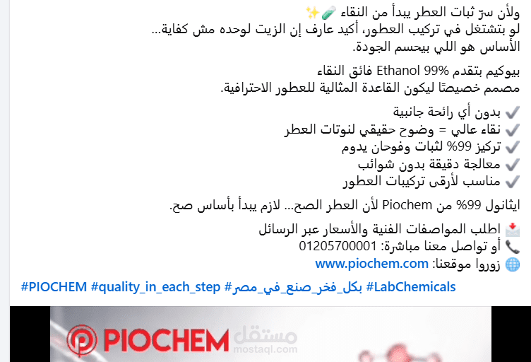 • كتابة محتوى تسويقي احترافي يبرز نقاء الإيثانول وتطبيقاته الصناعية، مع توجيه الرسائل بما يتناسب مع اهتمامات كل شريحة مستهدفة.