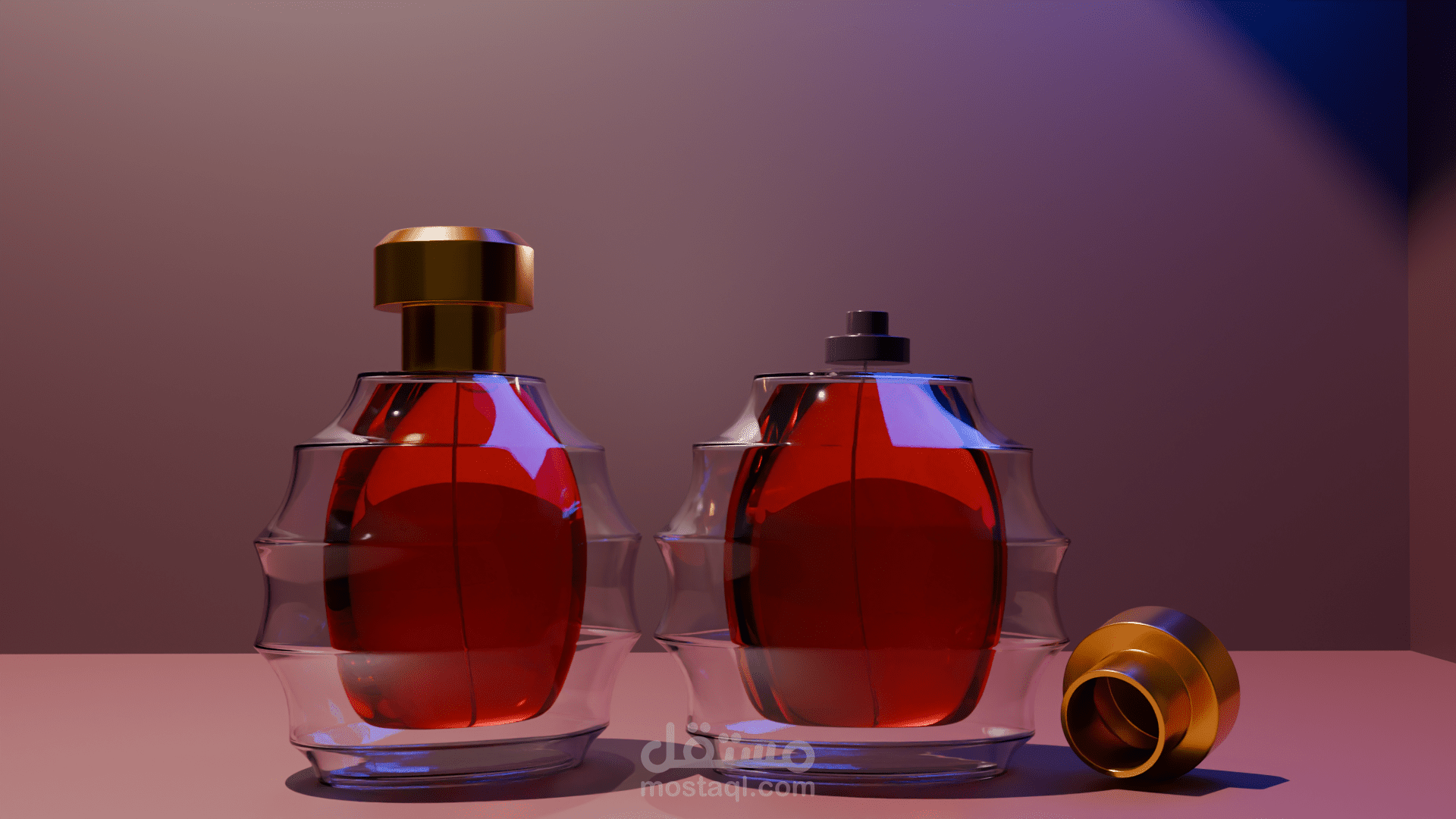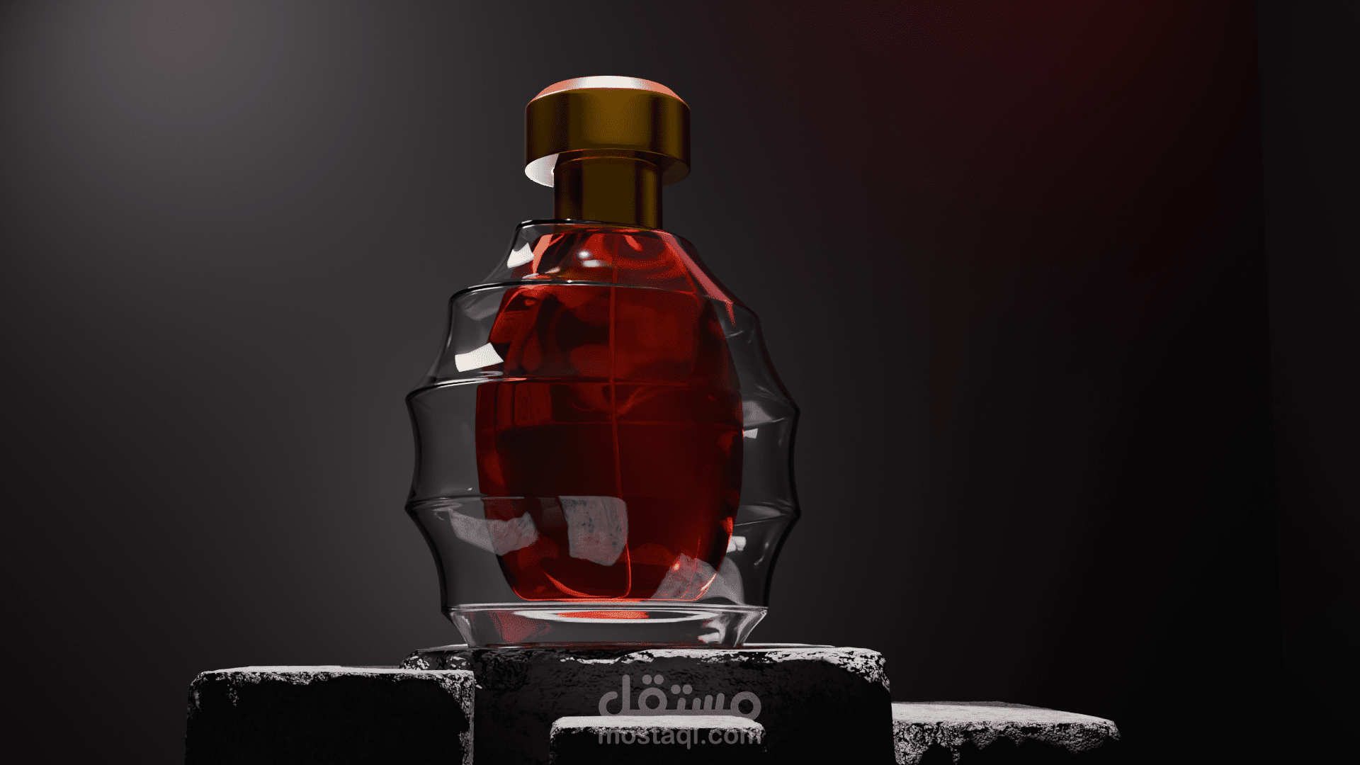 تصميم وتجسيد ثلاثي الأبعاد لزجاجة عطر فاخرة، مع التركيز على خلق توازن بصري بين انسيابية السائل وحدّة التصميم الهندسي الخارجي. تم العمل على أدق التفاصيل لضمان واقعية الإخراج بما يخدم الأغراض التسويقية والدعائية.