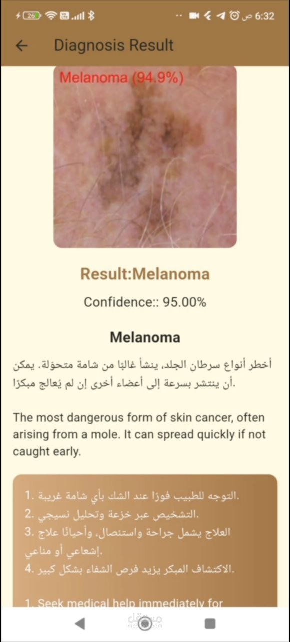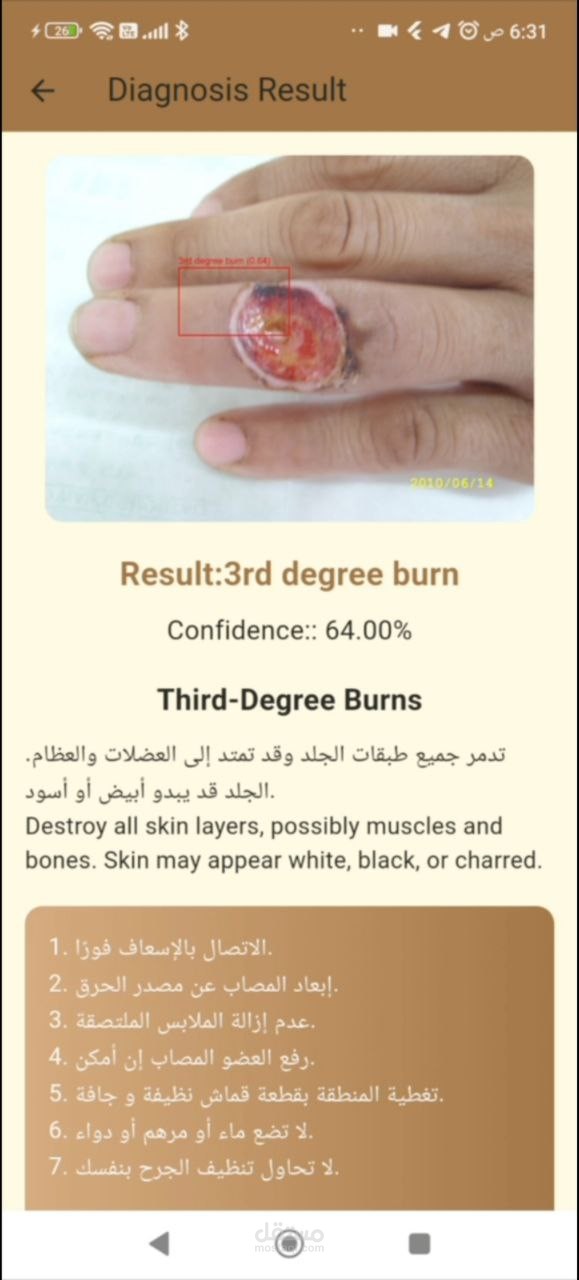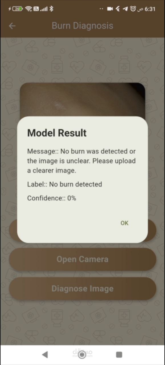 A mobile application powered by AI for detecting burn severity and classifying skin diseases. The system is designed to assist users in early diagnosis and provide helpful medical guidance.