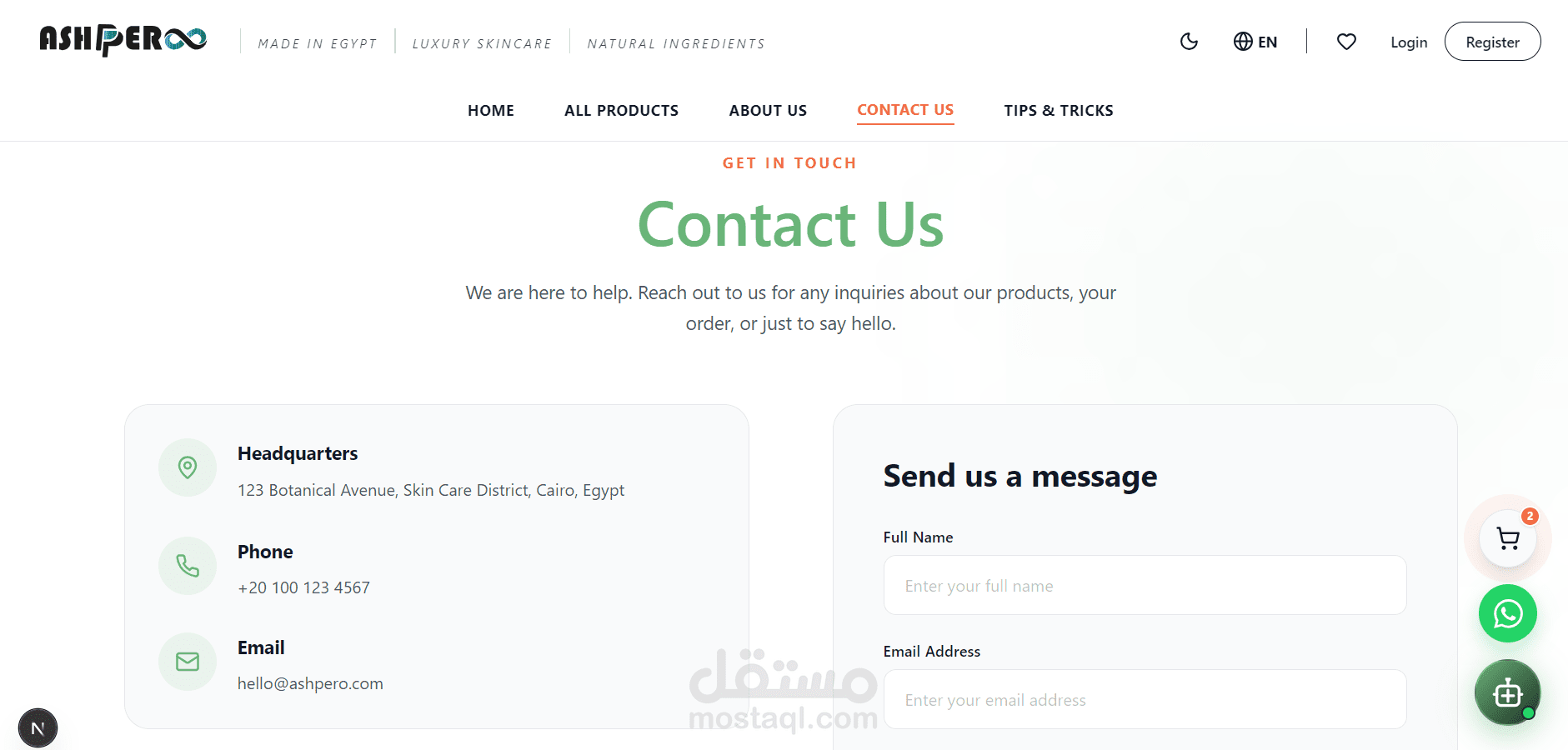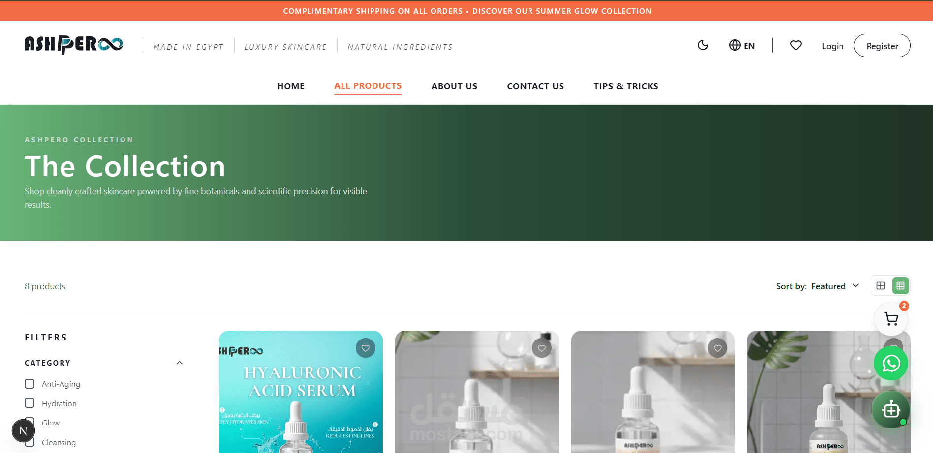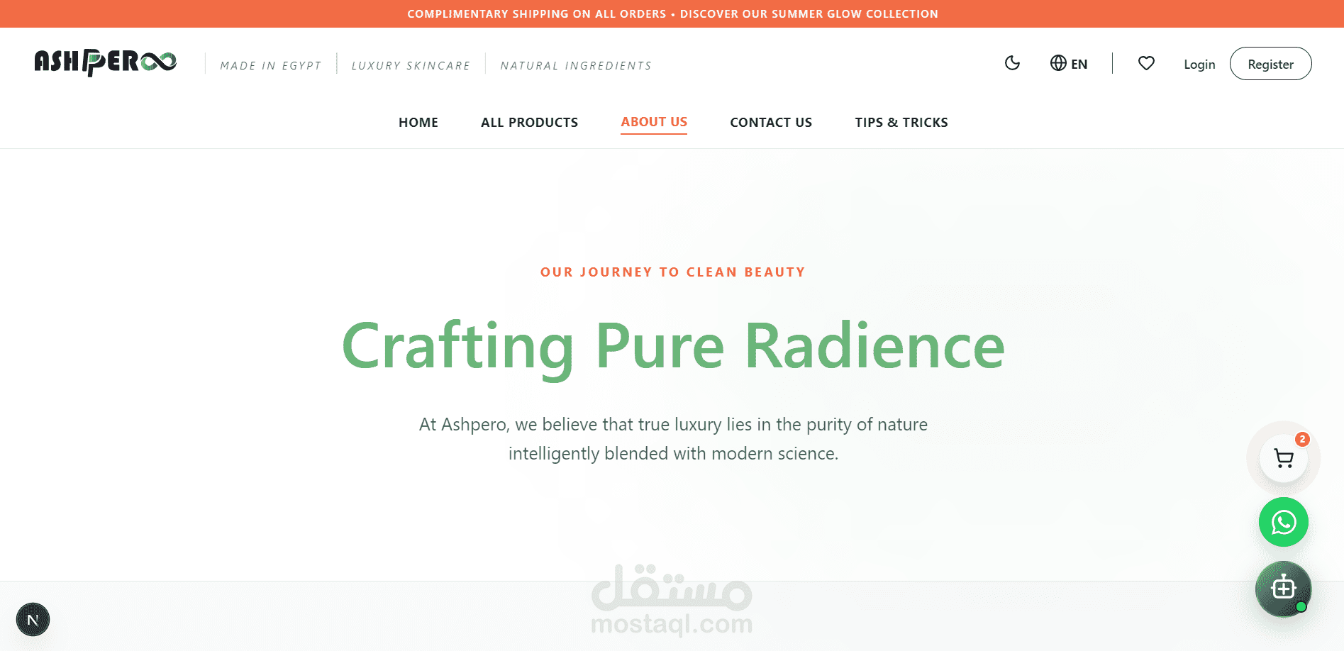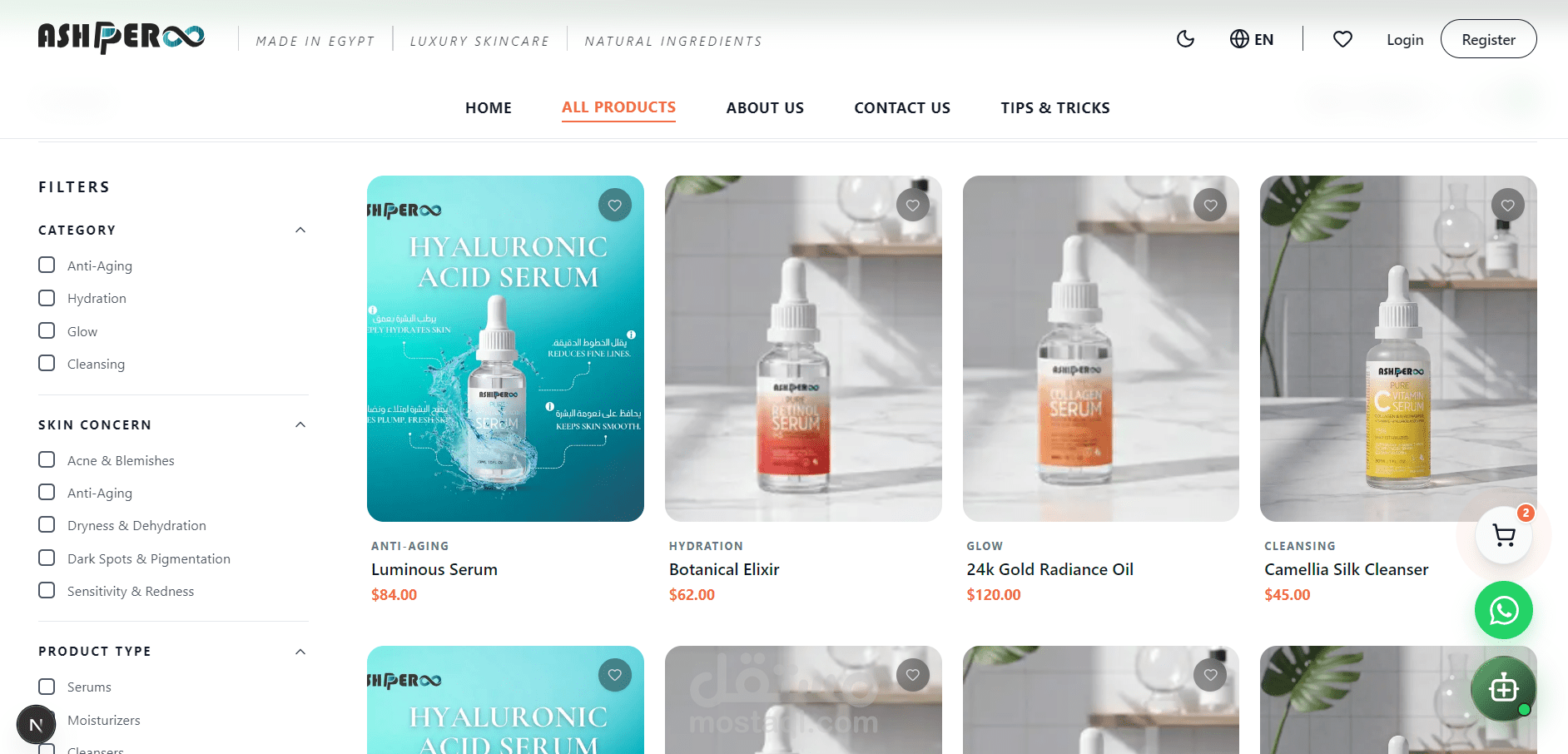 تطوير متجر إلكتروني متخصص في منتجات العناية بالبشرة (Skin Care)، يهدف إلى تقديم تجربة شراء سهلة وسلسة للمستخدم. يتيح الموقع تصفح المنتجات من خلال تقسيمات واضحة حسب الفئات، مع إمكانية البحث والوصول السريع لأي منتج.