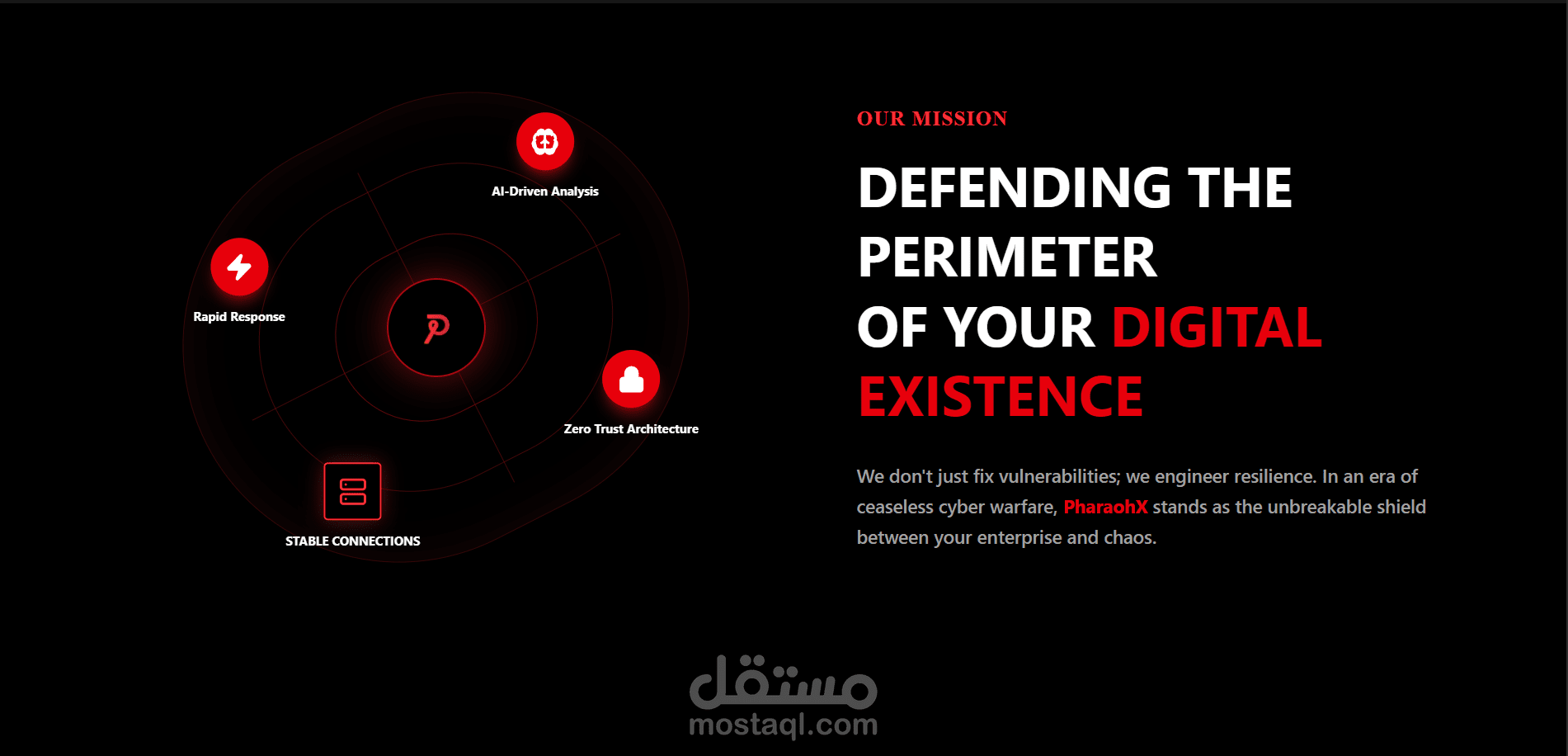 تطوير موقع ويب احترافي باسم PharaonX لعرض الخدمات بشكل منظم وجذاب، مع التركيز على تقديم هوية واضحة تعكس طبيعة المشروع بشكل عصري.