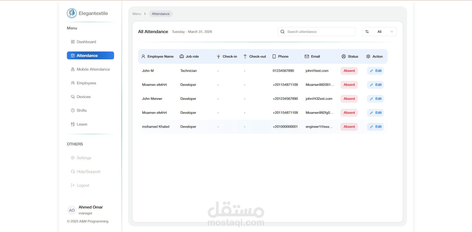 بالإضافة إلى ذلك، يوفر النظام لوحة تحكم للإدارة تتيح عرض بيانات الموظفين، سجلات الحضور، وإدارة العمليات المختلفة مثل الإجازات والتقارير. يساهم هذا النظام في تقليل الأخطاء، توفير الوقت، وتحسين كفاءة العمل، خاصة في الشركات التي تعتمد على فرق عمل متنقلة أو ميدانية.