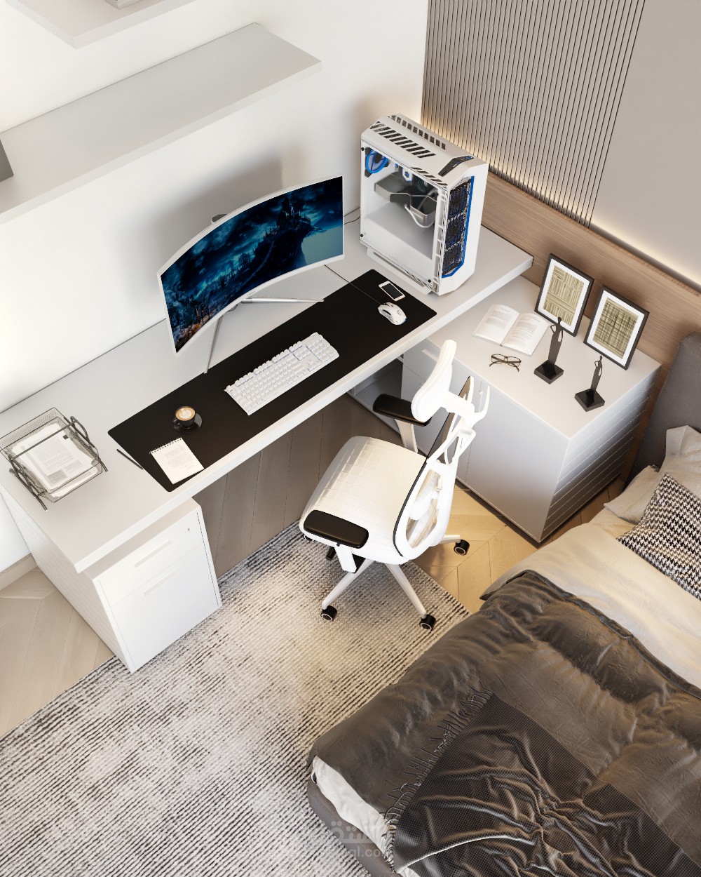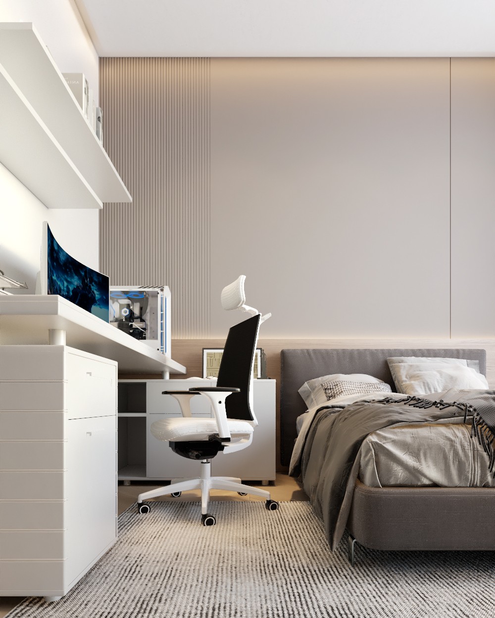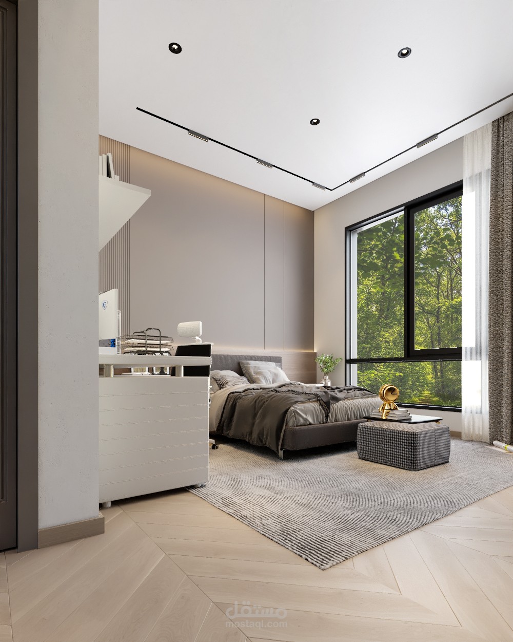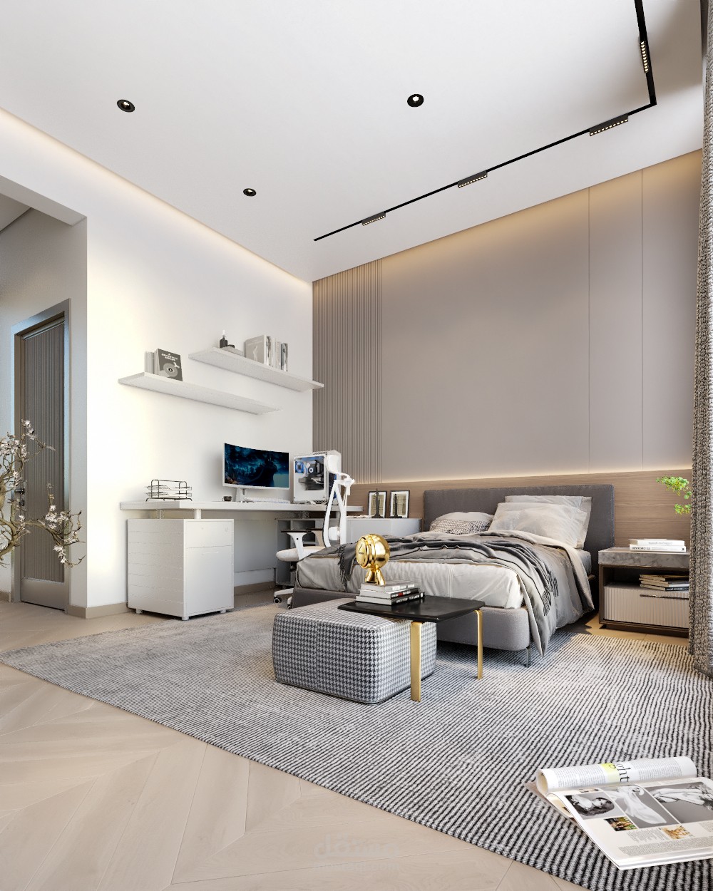 This contemporary bedroom design explores the balance between modern elegance and everyday comfort. The interior features a combination of soft textures, modern furniture, and layered lighting that creates depth and character.