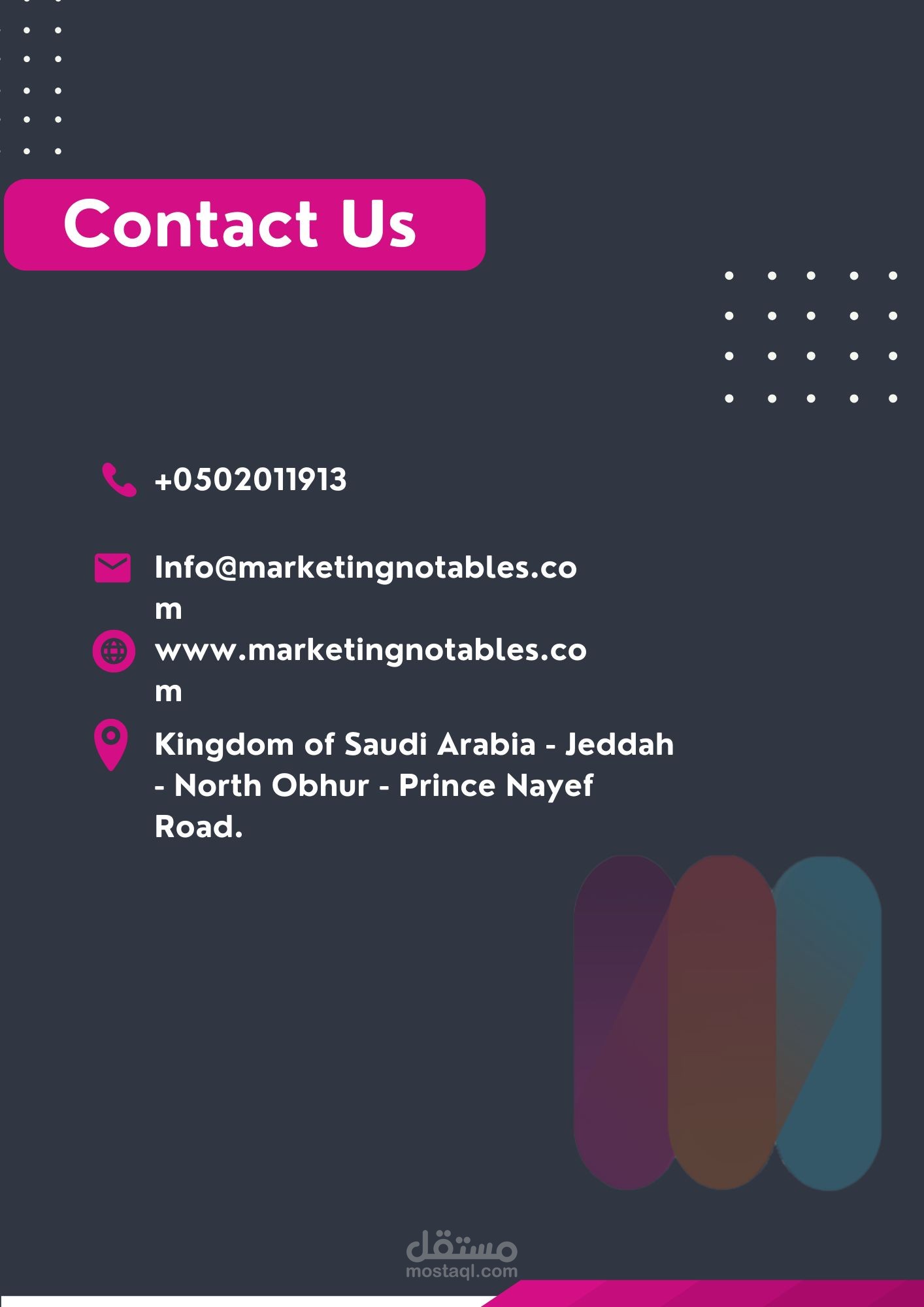 تصميم بروفايل لشركه Marketing Notables بمقاس ورق A4 طبقا لطلب العميل