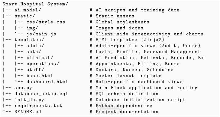 هذا المشروع هو نظام متكامل لإدارة المستشفيات (Smart Hospital Management System) تم تطويره باستخدام تقنيات Full-Stack حديثة بهدف تحسين كفاءة العمليات الطبية والإدارية.
