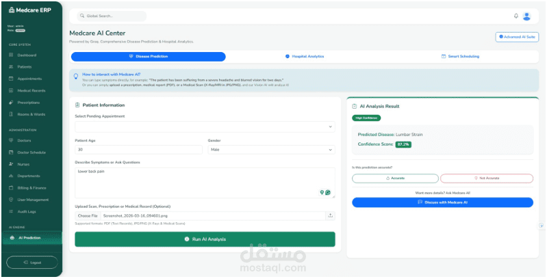 نظام ذكاء اصطناعي للتنبؤ بالأمراض وتحليل البيانات