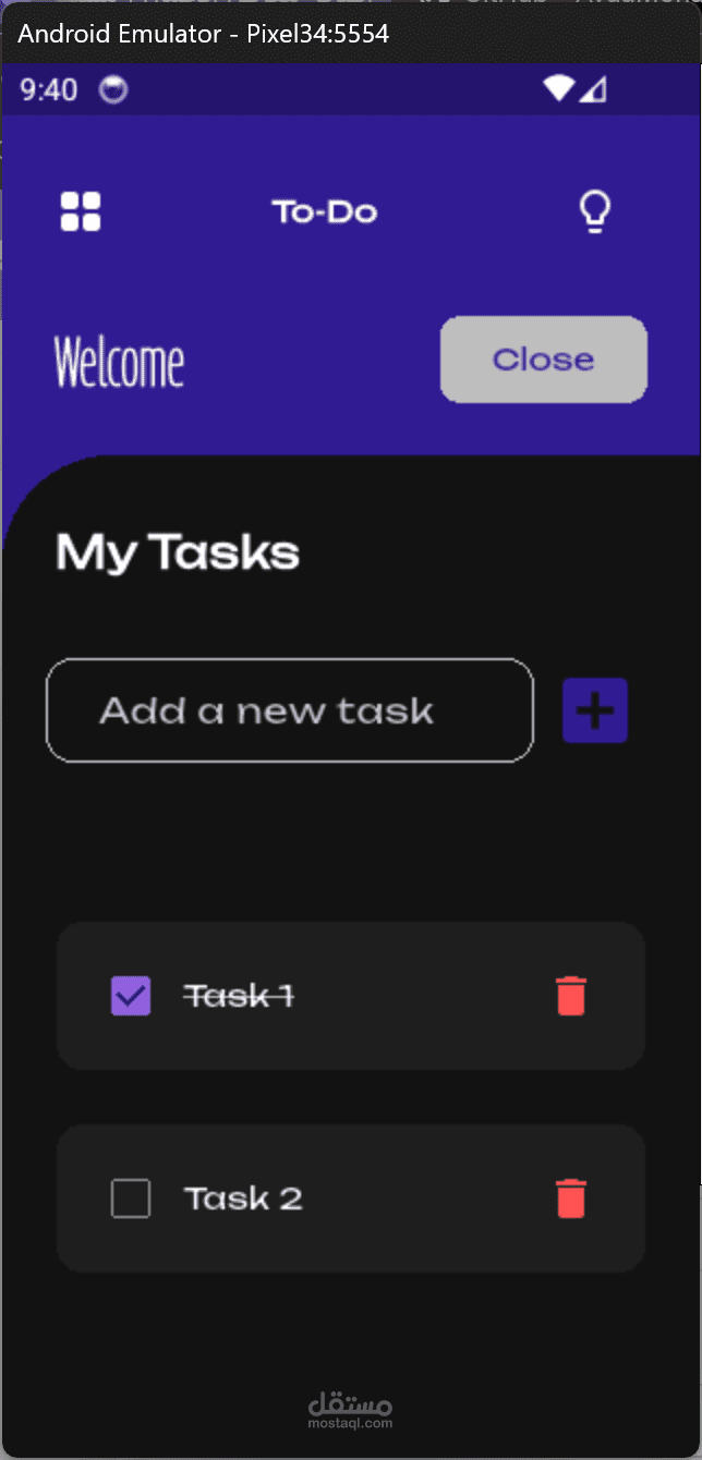 A simple yet well designed app made using Flutter and Sqflite, where you can add and delete tasks that are stored, toggle dark and light mode and scroll through a huge list of tasks.