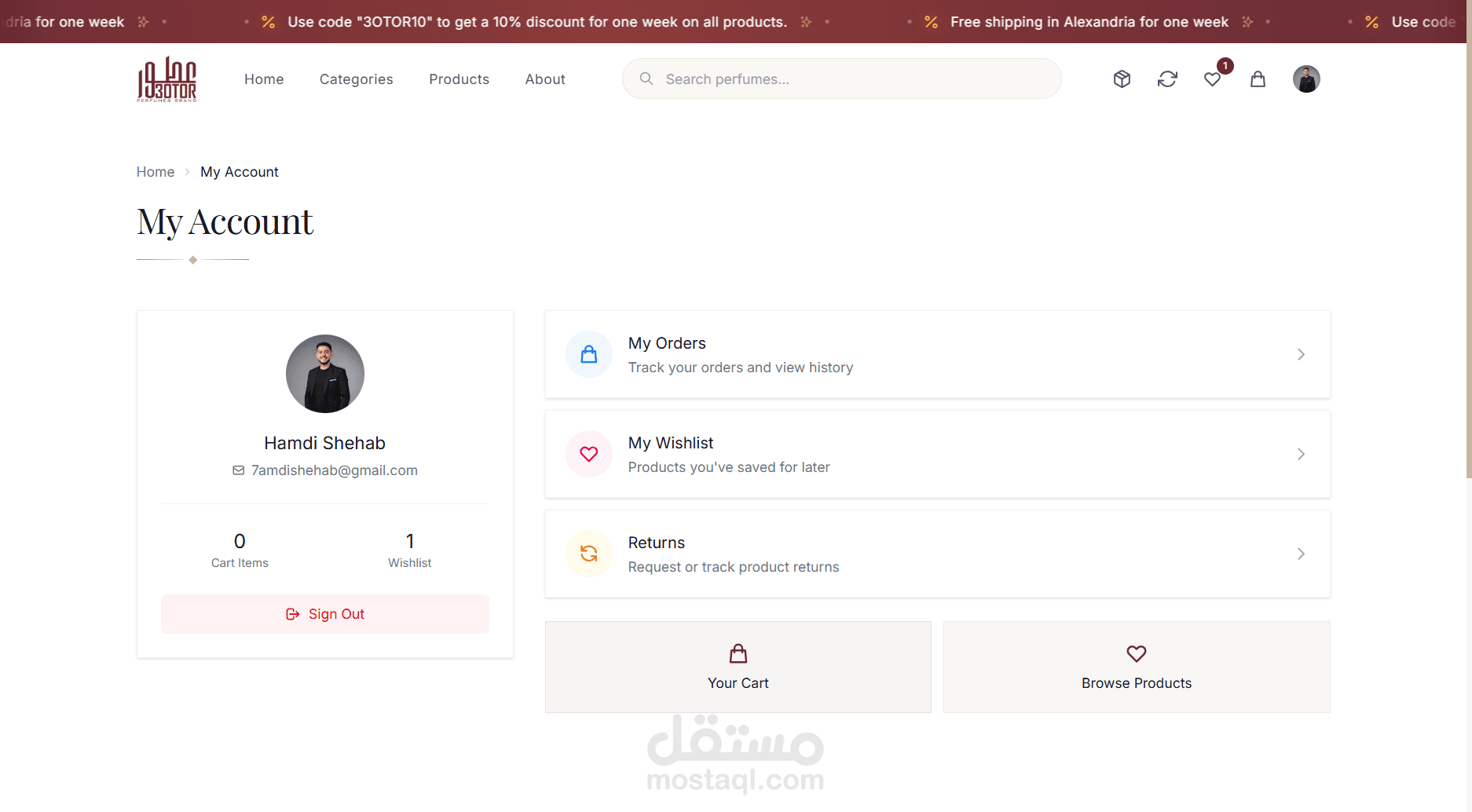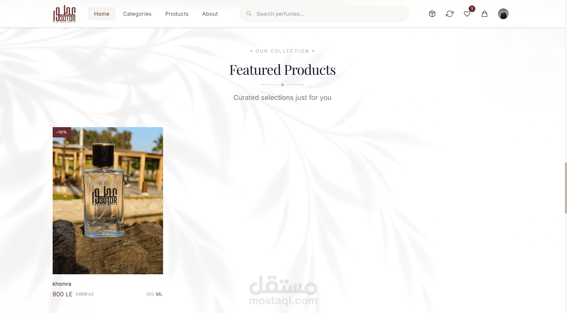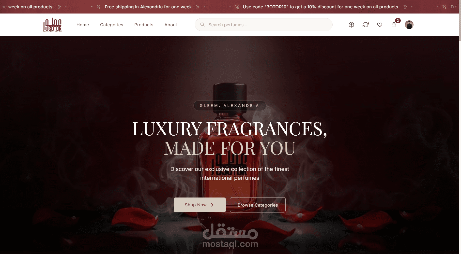 عطور منصة تجارة إلكترونية عصرية للعطور الفاخرة، مبنية باستخدام Next.js وTypeScript.