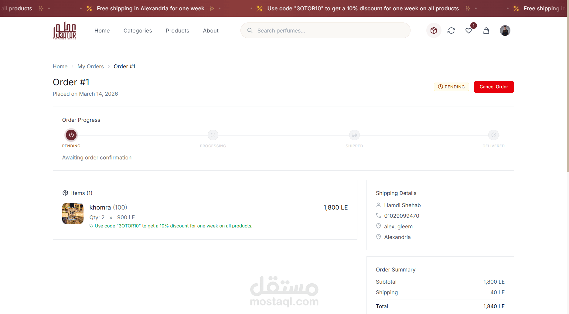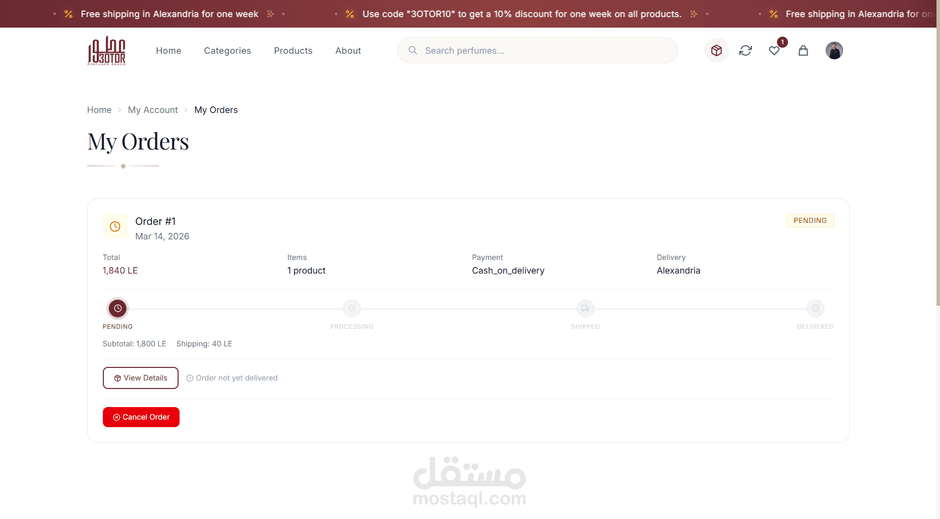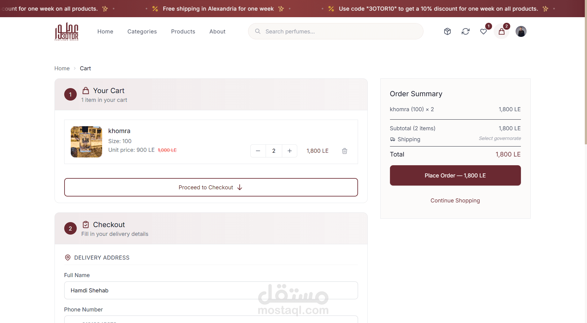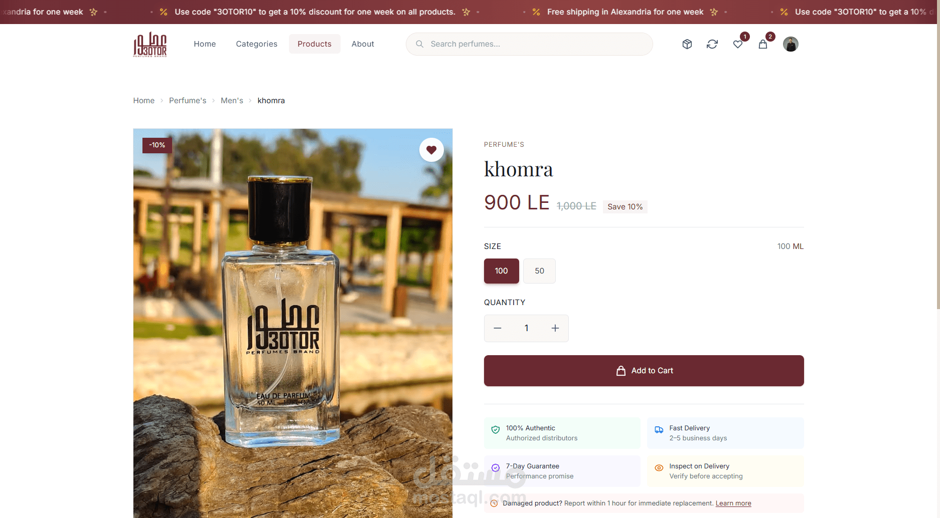 عطور منصة تجارة إلكترونية عصرية للعطور الفاخرة، مبنية باستخدام Next.js وTypeScript.