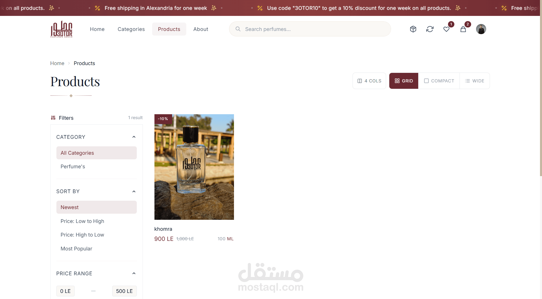 توفر المنصة تجربة تسوق سلسة مع ميزات متقدمة لفلترة المنتجات، وقوائم الأمنيات، وسلة التسوق، وإتمام عملية الشراء.